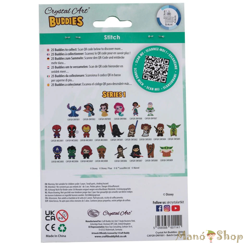Legyél kezdő vagy tapasztalt alkotó, ez a Stitch Crystal Art® Buddy minden korosztály és ügyességi szint számára kiváló választás. Tökéletes ajándék Disney-rajongóknak, vagy pihentető, kreatív kikapcsolódás saját magad számára. Engedd szabadjára a benned rejlő művészt, és varázsold otthonodba a Disney világát ezzel a lenyűgöző gyémántszemes kirakóval!