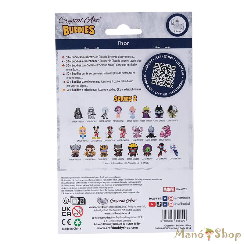 Bemutatjuk Thort, a MARVEL-univerzum legendás hősét, aki most a Crystal Art® Buddies vadonatúj, 2. sorozatában is helyet kapott! A készletből egy lenyűgöző, csillogó műalkotás készül, amely tökéletes dísze lehet íróasztalodnak, polcodnak – vagy egyedi ajándékként is kiváló választás MARVEL-rajongóknak.