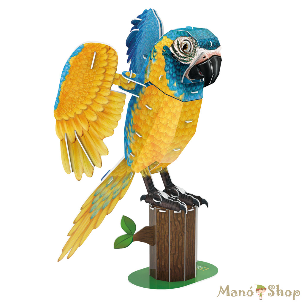 Dizájn: A papagáj tollazata élénk kék, sárga és türkiz színekben játszik, hűen tükrözve az igazi madár megjelenését. A modell kiterjesztett szárnyakkal ábrázolja a madarat, ami dinamikus hatást kelt.