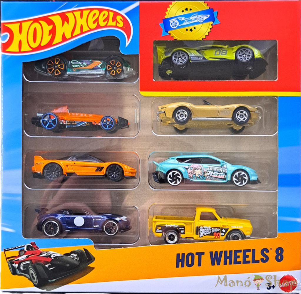 A Hot Wheels 1968-ban tűzte ki célul, hogy túlszárnyalja a valóság határait. Akkoriban ez egy 16 darabos, egyedi versenyautókból álló készletet jelentett. Mára évente több mint 400 új modellel bővül a kínálat, a legmenőbb és legőrültebb játékautókkal és teherkocsikkal, melyeket az autózás iránti szenvedély inspirál. Az aktuális 8 darabos készletek járművei mindig készen állnak egy vad száguldásra, ugrásra, ütközésre vagy látványos mutatványra – és minden szett tartalmaz egy exkluzív kisautót is.