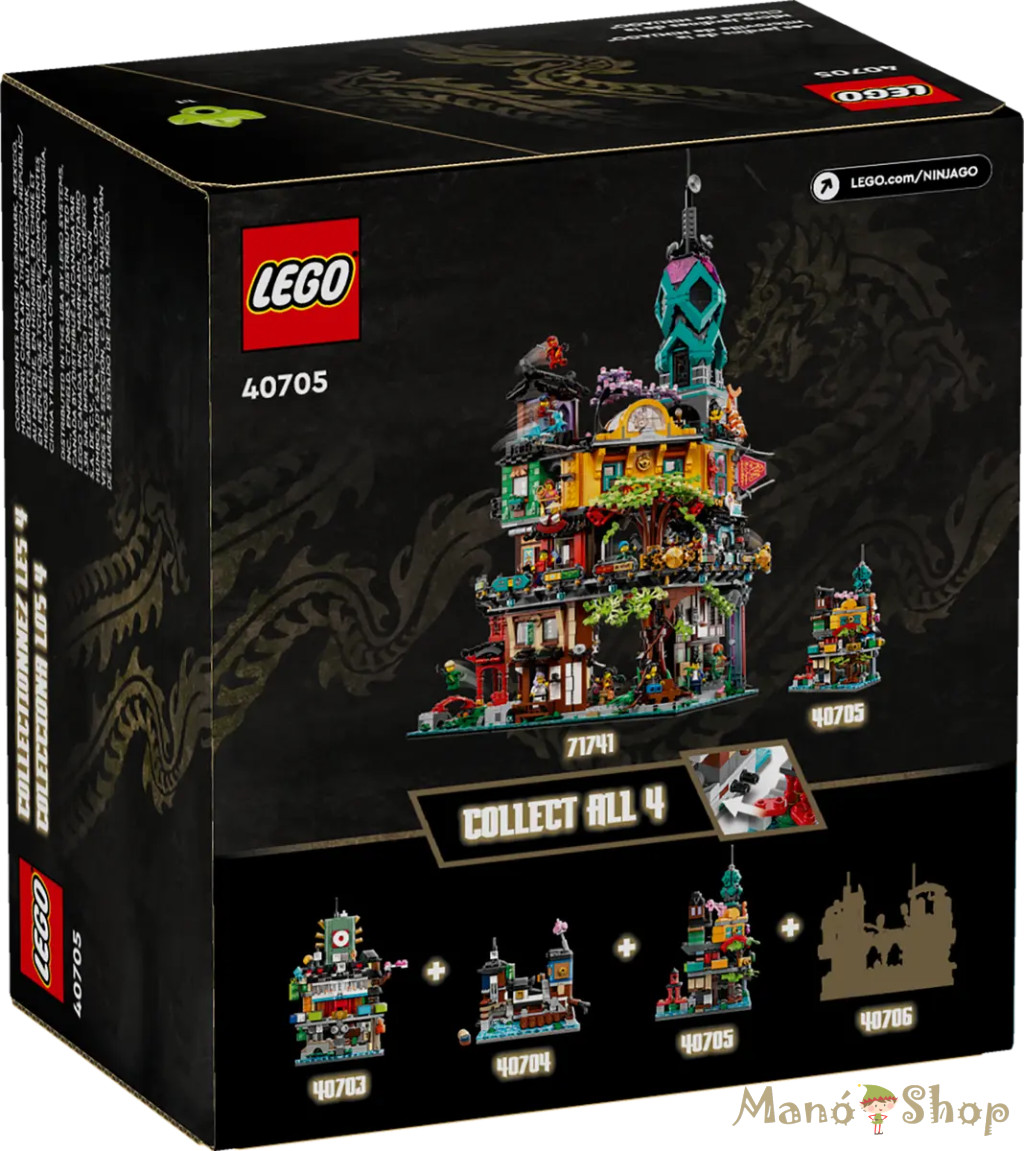 A lelkes, 10+ éves nindzsarajongók megépíthetik a NINJAGO® Városi Lombház mikromodelljét ezzel a részletgazdag játékszettek. A Micro NINJAGO Városi Lombház (40705) a NINJAGO Városi Lombház (71741) építőszett lekicsinyített mása, és tartalmaz egy 5-emeletes épületet fagylaltozóval és Chen tésztaboltjával. A mikro városi lombház játékot 3 másik (külön kapható) mikroszetthez lehet csatlakoztatni, hogy megépíthess egy apró NINJAGO Cityt.