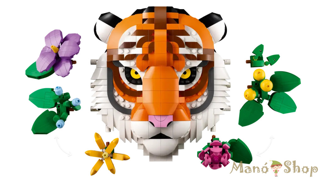 Csempéssz csodás színeket és egy kis természetet az otthonodba az egyedi, felnőtteknek készült LEGO® Art A faunagyűjtemény - Tigris (31217) építőszettel! A szett tökéletes ajándék egy új otthon lakásavatójára, hiszen az állatok és a művészet rajongói megalkothatják ezt a keret nélküli, 3D-s műalkotást. Ez a vadvilágot idéző dekoráció egy csodás tigrist ábrázol, amely díszes virágok és növények gyűjteményén át figyel. A modellt felakaszthatod a falra, de a beépített állvány segítségével akár azasztalon vagy a polcon is kiállíthatod. A virágok testre szabhatók, és különféle helyzetekbe állíthatók, ráadásul a LEGO Botanicals gyűjtemény többi (külön kapható) készletének kockákból épült virágaival is díszítheted a modellt. Ez a LEGO Art építőkészlet örömteli építést nyújt, miközben a felnőttek megépítik a saját látványos, kockákból épült műalkotásukat, és egy magával ragadó, kreatív tevékenységben lelik örömüket. A LEGO Art választék többi tagja a kedvében jár mindazoknak, akik rajonganak a klasszikus műalkotásokért, a pop-artért, a belső építészetért vagy bármilyen lakásdekorációért. Tigris- és virágdekoráció – Csempéssz egy kis színt és természetet az otthonodba a LEGO® Art A faunagyűjtemény - Tigris (31217) építőkészlettel! Vadvilágot idéző lakásdekoráció – Ez a keret nélküli, kockákból épült, 3D-s modell egy csodás tigrist ábrázol, aki díszes virágok és növények közül figyel Testre szabható művirágok – A virágokat különféle pozíciókba lehet állítani, de kombinálhatod őket a LEGO® Botanicals gyűjtemény többi (külön kapható) készletének kockákból épült virágaival is Ajándék egy új otthon lakásavatójára – Meglepetés neked vagy lakásdekorációs ötlet az állatok, a természet és a művészetek kedvelőinek Izgalmas építési élmény – Ez a megépíthető, művészet ihlette szett egy kreatív tevékenységgel várja a felnőtteket, amely során összerakhatják saját LEGO® műalkotásukat LEGO® Art szettek felnőtteknek – A LEGO Art választék lehetőséget ad a felnőtteknek, hogy kockákból megépíthessék, majd az otthonukban vagy az irodában kiállíthassák a szenvedélyük által inspiráltműalkotásokat Méretek – Ez prémium dekoráció, ami remekül mutat az irodai asztalon, 744 darabból áll, továbbá 20 cm magas, 31 cm széles és 6 cm mély