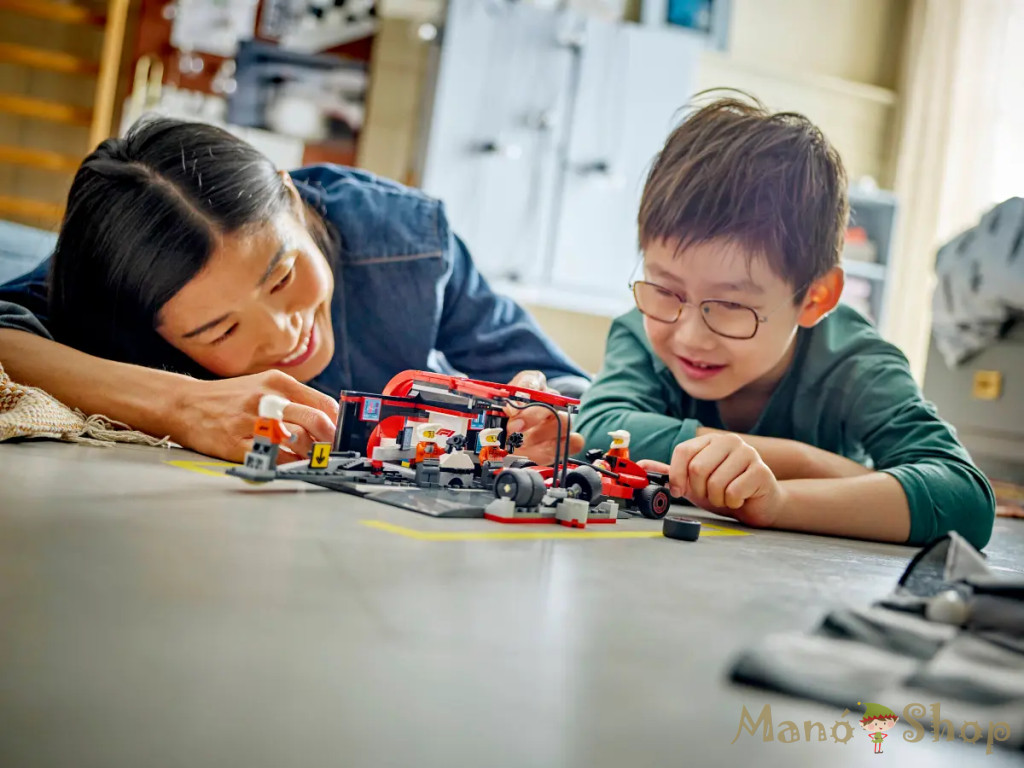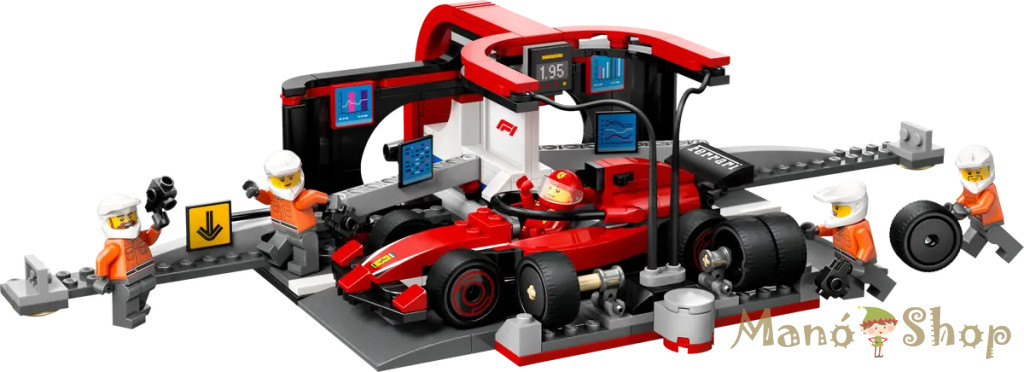 Csempészd a versenypálya izgalmait a gyerekek játékába a 6 éves kortól ajánlott LEGO® City F1®-es boxutca és személyzet, Ferrari autóval (60443) játék járművet tartalmazó építőszettel. A gyerekek mindent megtalálnak a készletben, amire a villámgyors boxutcai kiállásokhoz szükségük van, például új gumikat, kerékanyát mozgató pisztolyt és egy csapatot, akik egy gombnyomásra a helyükön vannak, és készen állnak a kerékcserére. A szetthez egy játék Formula 1® Ferrari versenyautó, egy pilóta minifigura és 4 boxutcai személyzethez tartozó minifigura is jár, hogy igazán tökéletes legyen az ifjú versenyrajongók számára. Ehhez a F1-es LEGO modellhez tartozik egy nyomtatott, lépésről lépésre vezető építési útmutató, de az építés menetének leírását digitális formában is megtalálod a LEGO Builder appban. Az alkalmazásban a gyerekek felnagyíthatják és 3D-ben elforgathatják a modelleket, építés közben követhetik a haladásukat, továbbá új szetteket fedezhetnek fel és menthetnek el. Ragadd meg a versenypályák izgalmait ezzel a játék járművet tartalmazó LEGO City F1 szettel, amely tökéletes születésnapi vagy ünnepi ajándék lehet az ifjú versenyrajongóknak. Fedezd fel a gyerekeknek és felnőtteknek készült, F1-es LEGO építőkészletek lendületes választékát (a szettek külön kaphatók)! Játék LEGO® F1® -es jármű – Csempészd a Formula 1® versenyek izgalmait a gyerekek játékába a 6 éves kortól ajánlott LEGO® F1®-es boxutca és személyzet, Ferrari autóval szettel Mit rejt a doboz? – Mindent, amire a gyerekeknek szükségük van a F1®-es boxutca és Ferrari játék autó megépítéséhez, valamint egy pilóta és 4 boxutcai szerelő minifiguráját Egy F1®-es modellépítőszett vidám funkciókkal – Vezesd az autót a boxutcába, majd nyomd meg a kart, hogy a személyzet a helyén legyen, és készen álljon a villámgyors kerékcserére F1®-es LEGO® szett kiegészítőkkel, hogy valósághűek legyenek a boxutca eseményei – A LEGO minifigurák kiegészítői közt szerszámokat, új, mintázat nélküli gumikat és kerékanya-mozgató pisztolyt találsz Vidám születésnapi vagy ünnepi ajándék gyerekeknek – Lepd meg a leendő kis versenyződet ezzel a 6 éves vagy nagyobb fiúknak és lányoknak készült LEGO® City F1®-témájú játékkészlettel Vidám építés digitálisan – A miniatűr F1® játék boxutcához a LEGO® Builder appban is találsz útmutatót, ahol a gyerekek készleteket menthetnek el, követhetik a haladásukat, és építés közben 3D-ben felnagyíthatják és elforgathatják a modelleket Még sebesebb Formula 1®-es akciók – Keresd a többi (külön kapható) LEGO® F1® építőkészletet, amelyeket közösen építhet meg és állíthat ki az egész család, sőt versenyeket is rendezhettek velük Méretek – A boxutcamodell ebben a 322 elemből álló LEGO® City készletben 8 cm magas, 14 cm széles és 5 cm mély