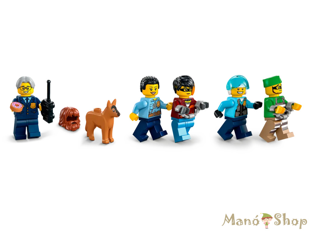 Ez a 3 emeletes LEGO® City Rendőrkapitányság (60316) játék telis-tele van inspiráló részletekkel, többek között egy kitörő funkcióval ellátott börtönnel, a bűnözők udvarával és egy kutyakiképző területtel. A gyerekekre emellett egy rendőrautó, egy helikopter és a bűnözők személyre szabott szemetes autója is vár, a mellékelt Útelemmel pedig más játékkészletekkel is összeköthetik a szettet. Egészítsd ki a jelenetet 5 minifigurával, köztük a LEGO City Kalandok TV sorozat 3 szereplőjével, és kezdődhet is a játék! Szórakoztató építés a 6 éves vagy nagyobb gyerekeknek Ehhez a LEGO építőkészlethez egy nyomtatott, lépésről lépésre vezető útmutató, és egy interaktív, digitális építési útmutató is tartozik. Az okostelefonokon és tableteken elérhető, ingyenes LEGO Építési útmutatók alkalmazás digitális útmutatójának intuitív nagyító és forgató eszközeivel a gyerekek építés közben minden szögből megjeleníthetik a modellek képét. A LEGO City kreatív világa A LEGO City játékkészletek élvezetes építést és játékélményt nyújtanak a részletgazdag épületekkel, a valósághű járművekkel és a szórakoztató karakterekkel, amik fantáziadús, végtelen játékra ösztönöznek. LEGO® City TV témájú Rendőrkapitányság játékkészlet – A LEGO City Rendőrkapitányság (60316) telis-tele van inspirációval a gyerekek és a LEGO City Kalandok TV sorozat rajongói számára Mit rejt a doboz? – Mindent, amire a gyerekeknek szükségük lehet a 3 emeletes rendőrkapitányság, a járőrkocsi, a helikopter és a szemetes autó megépítéséhez, valamint egy kutyafigura és 5 minifigurát, köztük a LEGO® City TV 3 szereplőjével Részletek és funkciók – A szemetes autó tartalmaz egy konténeremelőt és 2 verőkost, amivel be tudja törni a „könnyű szökést” nyújtó börtönfalat. Emellett a szett egy Útelemet is tartalmaz, így más LEGO® City készletekkel is összeköthető Ajándék, bármilyen alkalomra – Ez a LEGO® City Rendőrségi játék remek születésnapi, ünnepi vagy hétköznapi meglepetés a 6 éves vagy nagyobb gyerekeknek Készlet a játékhoz és a kiállításhoz – A megépített Rendőrkapitányság több mint 27 cm magas, 28 cm széles és 24 cm mély LEGO® minifigura-kiegészítőket tartalmaz – Ez a rendőrségi játékkészlet rengeteg mókás kiegészítőt tartogat a fantáziadús játékhoz, többek között rádió adó-vevőt, kamerát, kakit és fánk elemeket Interaktív, digitális építési útmutató – Az okostelefonokon és tableteken elérhető LEGO® Építési útmutatók alkalmazással a gyerekek építés közben minden szögből felnagyíthatják, megforgathatják és megjeleníthetik a modellek képét A gyerekek kreatív készségeinek fejlesztése – A gyerekek játék közben az önbizalmukat és kulcsfontosságú készségeiket is fejlesztik Középpontban a minőség – Minden LEGO® alkatrész megfelel a szigorú iparági szabványoknak, annak érdekében, hogy az építőelemek egységesek és kompatibilisek legyenek, emellett szórakoztató építési élményt nyújtsanak, ami már 1958 óta így van Első a biztonság – A LEGO® kockákat és elemeket ledobjuk, felhevítjük, összenyomjuk, megcsavarjuk és megvizsgáljuk, annak érdekében, hogy megfeleljenek a szigorú, globális biztonsági szabványoknak