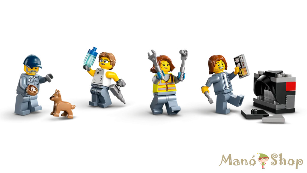 A gyerekek elmerülhetnek az újrahasznosítás izgalmas világába a 7 éves kortól ajánlott LEGO® City Roncstelep autókkal, autóbontó játékkészlettel. Ez a LEGO® roncstelep telis-tele van szórakoztató funkciókkal, ilyen például a működő, markoló daru és a zúzógép, amely kockákká préseli az autókat, ha megnyomod a kart. A gyerekek segíthetnek szétbontani a 2 klasszikus, 80-as évekbeli autót, és árulhatják a bontott alkatrészeket, felniket és gumiabroncsokat a régi irodaépületben. Játssz a 4 minifigurával, és kezdődhet is a szórakozás! Ehhez a kreatív építőjátékhoz tartozik egy nyomtatott, lépésről lépésre vezető építési útmutató, de az építés menetének leírását 3D-s formában is megtalálod a LEGO Builder appban. Az alkalmazásban a gyerekek építés közben felnagyíthatják és 3D-ben elforgathatják a modelleket, valamint követhetik a haladásukat. A LEGO City szettek klassz járműveket, valósághű szerkezeteket és szórakoztató karaktereket tartalmaznak, amelyek kreatív kalandokra hívnak. A gyerekek ezt a LEGO City szettet a LEGO City választék többi (külön kapható) készletével is kombinálhatják, hogy kibővítsék a játéklehetőségek világát. Autóbontós játék 7 éves kortól – Vezesd be a gyerekeket az újrahasznosítás nélkülözhetetlen világába a szórakoztató LEGO® Roncstelep autókkal játékkészlettel! Mit rejt a doboz? – Ez a LEGO® roncstelepes játék tartalmaz mindent, amire a gyerekeknek szükségük van a markoló daruval, zúzógéppel és irodaépülettel felszerelt játék roncstelep megépítéséhez, plusz 2 autó és 4 dolgozó-minifigura is a szett része Egy játék roncstelep izgalmas funkciókkal, hogy valósághű legyen a játék – A gyerekek a markoló daruval beemelhetik a játék autókat a zúzógépbe, majd a kar megnyomásával hulladékkockákká préselhetik őket LEGO® minifigura-kiegészítők – A játék roncstelephez olyan szórakoztató kiegészítők tartoznak, mint a játék számítógép és a szerszámok, fúró, csavarkulcsok és kalapács Vidám ajándék gyerekeknek – Ajándékozd ezt a LEGO® építőjátékot születésnapra vagy csak úgy a 7 éves vagy annál idősebb fiúknak és lányoknak Izgalmas digitális építési útmutató – A LEGO® Builder app egy intuitív építési kalandon kíséri végig a gyermekeket, hiszen építés közben felnagyíthatják és megforgathatják a modellek 3D-s változatát, és nyomon követhetik a haladásukat Város határok nélkül – A LEGO® City egy olyan hely, ahol a gyerekek szabadjára engedhetik a képzelőerejüket, hiszen a játék járművek, a szerkezetek és a lakók mind építésre, alkotásra, felfedezésre és játékra hívják őket Méretek – Ebben a 871 elemből álló játékkészletben az irodaépület 22 cm magas, 37 cm széles és 28 cm mély