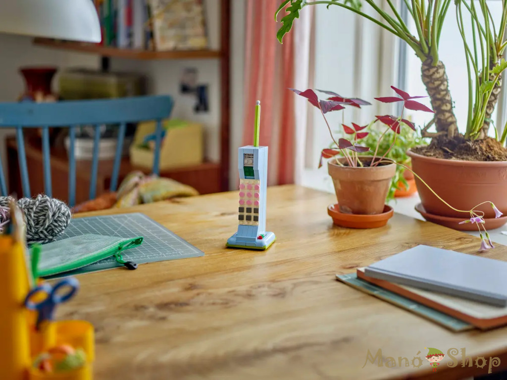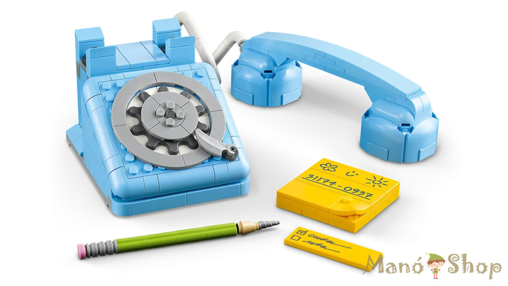 A nosztalgiára vágyó felnőtteket és a 8 éves vagy nagyobb, kreatív gyerekeket visszarepíti az időben a stílusos LEGO® Creator 3 az 1-ben Retró telefon (31174) építőkészlet. A szett tartalmaz egy vagány és retró stílusú játék telefont az 1960-as évekből, amelynek felemelhető a kagylója, rugalmas a zsinórja, elforgatható a tárcsázója, és visszaugrik a helyére, amikor a hívó leteszi a telefont. Ehhez a dekorációs retró szetthez tartozik egy kockákból épült ceruza és egy testre szabható jegyzetfüzet is: 3 különböző színű lapocskát használhatsz a különféle üzenetekhez. Ez a csodálatos LEGO szett 3 különböző építési lehetőséget kínál ugyanazokból a kockákból: egy retró stílusú játék telefont az 1960-as évekből, egy töltőre helyezett játék telefon az 1980-as évekből és 2 vagány telefont a 2000-es évekből. A LEGO Creator 3 az 1-ben készletek remek ajándékok a gyerekeknek, hiszen egy szett 3 különböző építési lehetőséggel várja őket. Az átépíthető, 3 az 1-ben játékszettek örömteli és fantáziadús játékot nyújtanak, a széles választék pedig lehetővé teszi, hogy a gyerekek a legfőbb szenvedélyeiknek hódoljanak. Fontos, hogy a modelleket csak külön-külön lehet megépíteni! A szett 383 elemből áll. 3 retró telefon 1 dobozban – A LEGO® Creator 3 az 1-ben Retró telefonnal a 8 éves vagy nagyobb gyerekek 3 különböző, retró stílusú modellkészletet építhetnek meg és építhetnek át ugyanazokból a kockákból Vidám játékidő nosztalgikus játékokkal –A gyerekek 3 különböző modellkészlettel játszhatnak el történeteket: egy 1960-as évekbeli tárcsázós telefonnal, egy töltőre helyezett, 1980-as évekbeli telefonnal és a 2000-es évek 2 telefonjával Telis-tele részletekkel – A 60-as évekbeli játék telefonnak felemelhető a kagylója, mozgatható a tárcsázója, és egy rugós funkció aktiválódik, amikor a hívó leteszi a kagylót; kockákból épült ceruza és testre szabható jegyzettömb is tartozik hozzá Retró stílusú, kiállítható modellek – Mindegyik vintage stílusú játék telefon színes lakásdekoráció lesz a hálószobában (a modelleket csak külön-külön lehet megépíteni) Retró ajándékok gyerekeknek – Ez a 3 az 1-ben játék remek építési és játékélményt nyújt azoknak a gyerekeknek és felnőtt modellgyűjtőknek, akik nagyon szeretik a retró stílusú modelleket Még vidámabb 3 az 1-ben szórakozás – Még több játékos történet vár a gyerekekre a LEGO® Creator 3 az 1-ben választék többi készletével (külön kaphatók) LEGO® Creator játékok – Minden 3 az 1-ben készlettel a gyerekek 3 különböző modellt építhetnek meg, amelyeket a legfőbb szenvedélyeik inspiráltak, a modellek közt állatok, járművek és házak találhatók Méretek – A 383 darabból álló, átépíthető, nosztalgikus játékszett tartalmaz egy 7 cm magas,15 cm széles és 11 cm mély, 1960-as évekbeli játék telefont