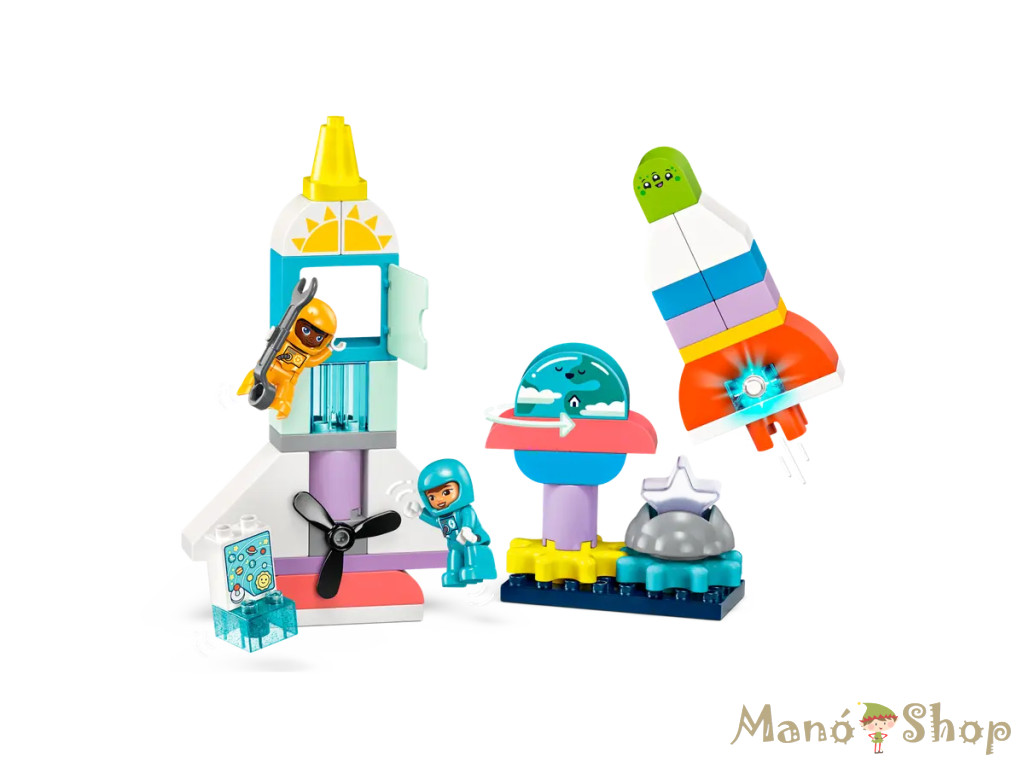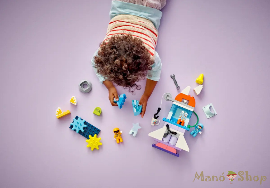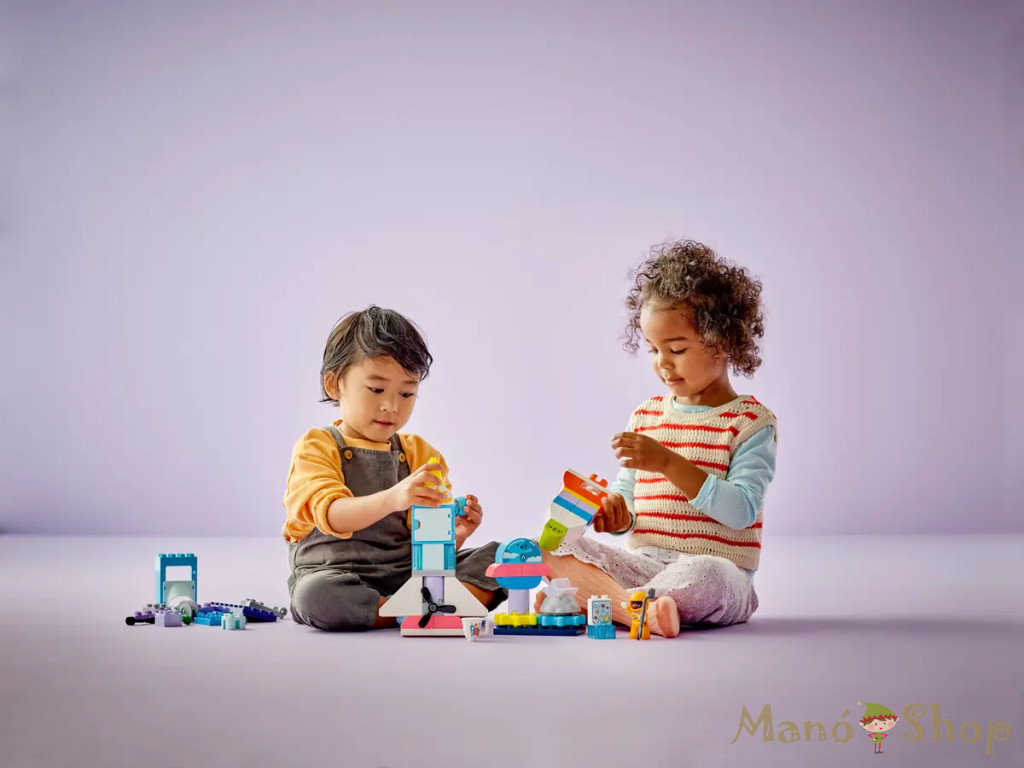 3… 2… 1… kezdődjön az eseményekkel teli játékidő a 3 az 1-ben átépíthető űrsikló kaland (10422) játékkal! A képzelet szárnyakat kap, miközben a 3+ éves kisgyermekek eljátsszák, hogy űrhajósok, egy játék űrhajón felfedezik a galaxist, idegenekkel találkoznak, és tanulnak a Naprendszerről. A játék űrhajó vidám kiegészítőkkel van tele, hogy inspirálja a kreatív játékot. A óvodások új távlatokat fedezhetnek fel, miközben vidám űrkalandokat találnak ki a 2 LEGO® DUPLO® űrhajós figurának, összebarátkoznak az űrlényekkel, vagy űrsétára mennek, hogy megjavítsák a játék űrhajót. A játékidő mindig tartogat valami újat ezzel a rugalmasan alakítható, 3 az 1-ben építőszettel, amelyhez számos érdekes építőkocka és elem tartozik, hogy 2 további űrjárgányt vagy egy földi bázist lehessen építeni belőle, vagy bármit, amit a kicsik el tudnak képzelni! A forgó kerekekkel és propellerrel, a felhúzható csörlővel, a csuklópántos ajtókkal és a világító elemmel ez a vidám fejlesztőjáték segít a kicsiknek a fejleszteni a finommotoros készségeket is. Átépíthető játék űrhajó – Engedd, hogy a kis űrhajósok a világűr iránti rajongásuknak ezzel a sokoldalú, 3 éves kortól ajánlott LEGO® DUPLO® 3 az 1-ben űrsikló kaland játék űrrakétával hódoljanak Tele a doboz – A színes építőkockák és játék kiegészítők széles választékával, az űrlényfigurával és a 2 LEGO® DUPLO® űrhajóssal a kisgyermekek végtelen sok űrbéli kalandot találhatna ki Fejlesztőjáték óvodásoknak – A kicsik csiszolhatják a finommotoros készségeiket, miközben csörlőznek, forgatjáka propellert vagy kinyitják az ajtókat, és fejleszthetik a kreativitásukat is azáltal, hogy többféle űrjárművet építenek Világító elemet is tartalmaz – A mókás világító elem (elemek mellékelve) egy vizuális inger, és az űrhajós játékot egy új dimenzióval bővíti Űrhajós ajándékötlet óvodásoknak – Lepj meg egy 3 éves vagy annál nagyobb kis űrhajóst egy különleges alkalomból ezzel a kisgyermekeknek készült fejlesztőjátékkal, amely kreatív játékra biztatja őket Minőségi játék kicsiknek – Ennek aLEGO® DUPLO® űrhajós készletnek a kockáit és az elemeit ledobjuk, felhevítjük, összenyomjuk, megcsavarjuk és megvizsgáljuk, így biztosítva, hogy megfeleljenek a szigorú gyerekbiztonsági előírásoknak Keltsük fel a kicsik kíváncsiságát – A LEGO® DUPLO® szettek segítenek a kis építőknek elsajátítani az életben fontos kérdéseket, és segítenek, hogy merjenek nagyot álmodni a világról...és azon túl Rengeteg építőkocka a hatalmas játékélményért – Ennek az 58 elemből álló készlet a fő eleme az űrrakéta, amely 35 cm magas, 18 cm hosszú és 19 cm széles