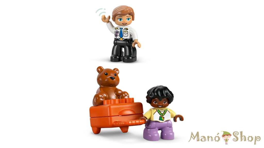 Segíts a gyerekeknek, hogy egyre magabiztosabban vágjanak bele új élményekbe az Először a repülőtéren (10443) építőjátékkal. Ezzel a kisgyermekeknek szóló ajándékkal az óvodások hosszú órákon át szórakozhatnak, miközben eljátsszák, hogy összecsomagolnak egy izgalmas utazásra, és elmennek az utasfelvételre. A LEGO® DUPLO® repülőtéri játékkészlet rengeteg eleme inspirálja a fantáziadús játékot. Tartalmaz egy ellenőrzőpultot, ahol a gyerekek eljátszhatják, hogy átvilágítják a szalagon haladó bőröndöt, egy légiforgalmi irányítótornyot és egy mozgatható játék repülőt, amelybe a plüssmackó-, a gyermek- és a pilótafigura illeszthető. Ez az óvodásoknak szóló fejlesztőjáték telis-tele van fejlesztőtevékenységekkel. A szetthez tartozó érzelemkerékkel a családok beszélgethetnek a forgalmas repterekkel és a repüléssel kapcsolatos érzéseikről. A kisgyermekek fejleszthetik a finommotoros készségeiket, miközben becsomagolnak a csuklópántos játék bőröndbe, és a repülőgépbe helyezik a figurákat. Ezzel a logikai játék előhívja a kreativitásukat is, hiszen az utazás minden egyes lépését meg kell tenni, hogy a saját LEGO DUPLO kalandjuk főhősévé váljanak. 23 elemből áll. A repülőteres játékszett fantáziadús játékra hív – Az óvodások felfedezhetik az utazáshoz fűződő érzéseiket az Először a repülőtéren kisgyermekjátékkal, amely egy levehető tetővel ellátott, játék repülőgépet tartalmaz Történetmesélős játék óvodásoknak – A fantáziadús játékhoz egy gyermek- és egy pilótafigura, továbbá egy LEGO® DUPLO® mackófigura tartozik, hogy a kicsik különféle szerepeket játszhassanak el Telis-tele fantáziadús játékokkal – A repülőteres játékkal a kisgyermekek elmerülhetnek a kreatív játékban, miközben átvilágítják és ráteszik a poggyászszalagra a bőröndöt, vagy eljátsszák, hogy a toronyból irányítják a repülőt Fejlesztőjáték óvodásoknak – Ezzel a kisgyermekeknek készült fejlesztőjátékkal a családok felfedezhetik az óvodások repüléssel és repterekkel kapcsolatos érzéseit, miközben segítenek fejleszteni a logikus gondolkodást és a finommotoros készségeket Repülőteres LEGO® DUPLO® ajándék óvodásoknak – Egy fantáziával teli játék születésnapra vagy különleges alkalomra azoknak a 2 éves vagy nagyobb óvodásoknak, akik imádják a játék járműveket Játékos tanulás – Nézd meg a LEGO® DUPLO® Városi kalandok Mentőautó és mentősofőr, valamint az Első látogatás az orvosnál (külön kapható) játékokat, hogy a gyermekednek még több „első élményben” legyen része Gondosan készített fejlesztőjátékok kíváncsi óvodásoknak – A fantáziadús LEGO® DUPLO® játékok vidám történetekkel és mindennapi hősökkel várnak, hogy segítsenek a kisgyermekeknek megérteni a körülöttük lévő világot Méretek – A mozgatható játék repülőgép ebben a 23 darabból álló, repülőteres játékban 10 cm magas, 18 cm hosszú és 18 cm széles