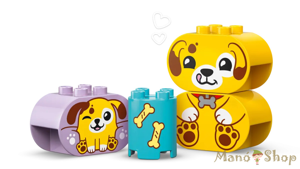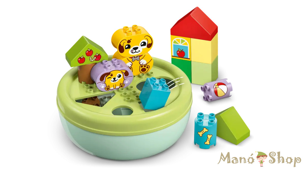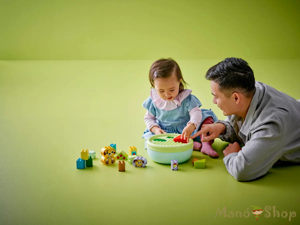 Adj kétféle játékot a kutyusimádó óvodások kezébe a Formaválogató: Kutyusház (10441) játékkal! Ez a 18 hónapos kortól ajánlott játék fejleszti a finommotoros készségeket, és az óvodások vidáman ismerkedhetnek meg a formákkal és a problémák megoldásával, miközben házat építenek a kiskutyáknak, majd a formákat a tetőn lévő résekbe illeszthetik. Ez a térérzékelésre fókuszáló kisgyermekjáték rengeteg vidám családi tevékenységet rejt. A felnőttek rámutathatnak a szett különféle formájú elemeire, miközben a kisgyermekek a fákat, a kutyafigurákat vagy épp a házat építik. Akár történeteket is eljátszhatnak a cuki LEGO® DUPLO® játék kutyusokkal, labdázhatnak velük, vagy csontot adhatnak nekik. Ha véget ért a fantáziadús játék, akkor indulhat a vidám formaválogatás! A kicsik türelmet és koncentrációt tanulnak majd, miközben keresik a réseikbe illő formákat. Ha elsőre nem sikerül megtalálni a megfelelő formát, akkor fejlesztik a kitartásukat és a szem-kéz koordinációt, miközben megpróbálják újra megkeresni a megfelelő alakú rést. 17 elemből áll. Formafelismerő játék kutyusimádó kisgyermekeknek – Támogasd az óvodások kutyusuk iránti rajongását a Formaválogató: Kutyusház kisgyermekjátékkal, és segíts nekik játékosan megismerkedni a formákkal! Finommotoros készségeket fejlesztő játék kétszer annyi vidámsággal – A 4-féle formájú, színes kockákból megépítheted a kiskutyák játszóhelyét, majd szétbonthatod az építményt, és a kutyatál tetején lévő résekbe illesztheted a kockákat Fejlesztőtevékenységek a családi szórakozáshoz – A szülők megismertethetik a kicsikkel a különféle formákat, miközben a gyermekek kutyákat, fákat és egy házat építenek belőlük, hogy vidám történeteket játszhassanak el a cuki játék kutyusokkal Fejlesztőjáték – Ez a fejlesztőjáték segít a kisgyermekeknek a térérzékelésben, fejleszti a türelmüket, a kitartásukat és az érzelmeik kezelését, miközben a résekbe illeszkedő formákat keresik Ajándék kisgyermekeknek – Ez az állatos LEGO® DUPLO® játék remek születésnapi ajándék vagy különleges meglepetés lehet olyan 18 hónapos vagy nagyobb óvodások és kisgyermekek számára, akik szeretik a kutyákat és a színes, problémamegoldó játékokat Rengeteg lehetőség a játékos tanulásra – Keresd a LEGO® DUPLO® készleteket (külön kaphatók), amelyeket alaposan teszteltünk, hogy biztonságos legyen a játék, és hogy eleget tegyenek a kisgyermekek érdeklődésének, kíváncsiságának Készségfejlesztő, fantáziadús játék – A LEGO® DUPLO® kisgyermekjátékokat úgy terveztük, hogy elősegítsék egy óvodáskorú gyermek fejlődési mérföldköveit, miközben vidáman, játékosan és magával ragadó módon tanulhatnak Méretek – A 17 darabból álló szett tartalmaz egy 22 cm átmérőjű, tetővel ellátott tálat
