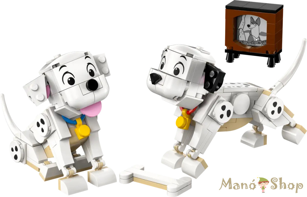 Nyűgözd le a gyerekeket és a 6 éves vagy nagyobb rajongókat a 101 kiskutya: Kuksi és Pelyhes dalmatakölykökkel (43271), akik ebben a LEGO® ǀ Disney építőjátékban várják őket. Ez a játéklehetőségekkel teli építőjáték a 101 kiskutya című, klasszikusDisney-film 2 dalmatakölyök-szereplőjét tartalmazza, plusz egy kockákból épült csont és egy kicsi tévé is a szett része. A LEGO ǀ Disney kutyusfiguráknak mozgatható a fejük, a lábuk és a farkuk, így többféleképp állíthatod be őket. Ez az aranyos, megép íthető játékkészlet egy szuper Disney ajándékötlet lányoknak, fiúknak és rajongóknak. A készlet remekül kombinálható a választék többi (külön kapható) LEGO ǀ Disney építőszettjével, és könnyedén magaddal viheted bárhová. Ráadásul, a felnőtt Disneyrajongók, akik imádják a cuki kutyusukat, csatlakozhatnak hozzád, és megépíthetik ennek a készletnek a párját, a haladó felnőtt építőknek készült, külön kapható 101 kiskutya: dalmatakölyök szettet. A gyerekekre egy könnyű, egyszerű és intuitív építési kaland vár a LEGO Builder appal! Az alkalmazásban a fiatalok felnagyíthatják és megforgathatják a modellek 3D-s változatát, készleteket menthetnek el, és nyomon követhetik a haladásukat. Ez az építőszett 268 elemből áll. Megépíthető játék kutyusok gyerekeknek – Inspiráld a 6+ éves lányokat és fiúkat a megépíthető 101 kiskutya: Kuksi és Pelyhes dalmatakölykök játékkészlettel, amely mindig készen áll a fantáziadús játékra, és kiállítva is remekül mutat Dalmatakölykök mindenhol – Ez a gyerekeknek szóló építőjáték a klasszikus, 101 kiskutya című film Kuksi és Pelyhes LEGO® ǀ Disney szereplőit tartalmazza, egy kockákból épült csont és egy kicsi, képernyős tévé kíséretében Játék kutyusok, akik mindig készen állnak a játékra – Mindkét megépíthető LEGO® ǀ Dsiney kutyusfigurának mozgatható a feje, a lába és a farka, és olyan klasszikus testhelyzetekbe állíthatók, mint az állás, az ülés vagy a fekvés LEGO® ǀ Disney építőjáték gyermekeknek – Építsd meg Kuksit és Pelyhest, játssz el szórakoztató történeteket, majd a játékidő végén állítsd ki a klasszikus, megépíthető kutyusfigurákat! Aranyos ajándékötlet 6 éves kortól – Ez a 2 Disney kutyusfigurát tartalmazó építőjáték egy szórakoztató ajándékötlet és aranyos kis meglepetés a gyerekek születésnapjára, lányoknak és fiúknak egyaránt Megépíthető LEGO® ǀ Disney játékszett – Kombináld ezt a klasszikus építőkészletet a kompatibilis LEGO építőjátékok széles választékával és a LEGO ǀ Disney megépíthető készletek választékával (a szettek külön kaphatók) Készségfejlesztés – A 2 megépíthető LEGO® ǀ Disney figurával, a kis melléképítményekkel és a látványfokozó funkciókkal ez a gyermekeknek szóló építőjáték játékosan fejleszti az életben fontos készségeket A dalmatakutyusok méretei – Ez a 268 elemből álló szett a 101 kiskutya című Disney-film Kuksi és Pelyhes figuráit tartalmazza, és mindkét figura 9 cm magas
