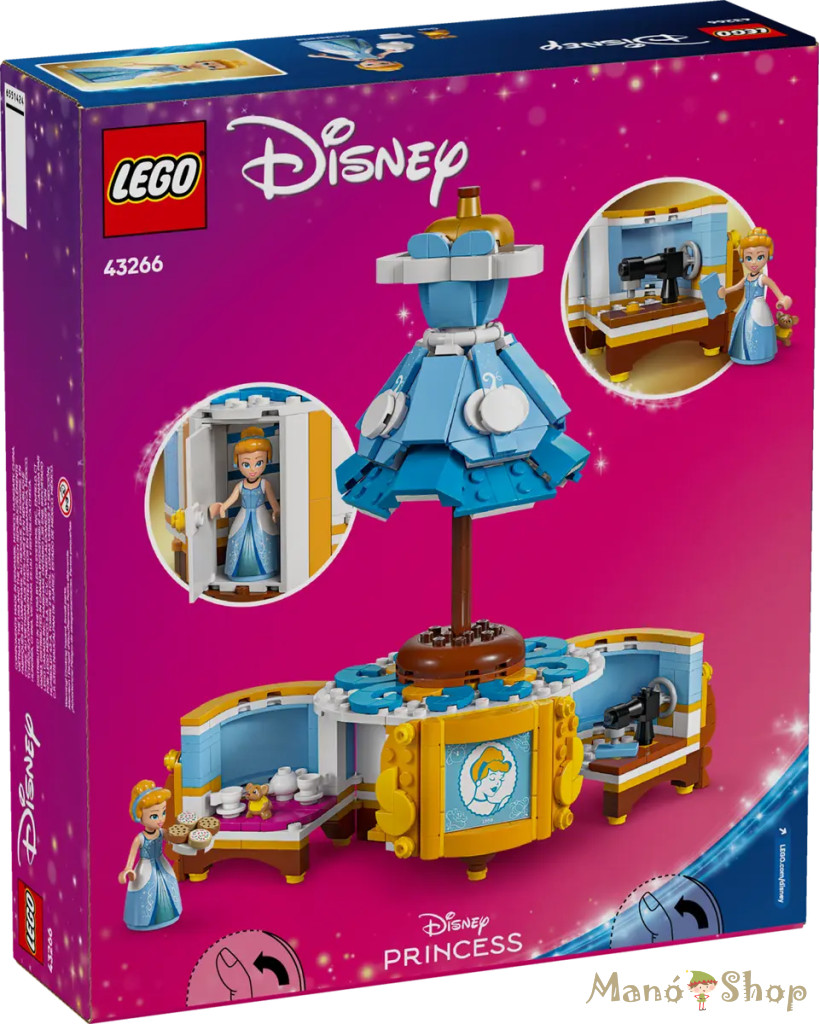 Ünnepeld a divatot és a Hamupipőke című Disney-film 75. évfordulóját a 9+ éves rajongókkal együtt! A Hamupipőke ruhája (43266) LEGO® ǀ Disney hercegnő építőkészletben egy ruhát, egy ruhaállványt és egy titkos meglepetésekkel teli bemutatóállványt találsz. Az izgalmas kalandokat egy LEGO ǀ Disney minibaba-karakter a és egy LEGO ǀ Disney egérkarakter inspirálja. A megépíthető játékszett elemeivel díszítheted a bemutatóállványt, és egy Hamupipőke portrélapocskát is találsz a készletben. A lányoknak és fiúknak készült Disney építőszett nagyon népszerű lesz, hiszen egy olyan komplex építménnyel várja a gyerekeket, amely inspirálja a divattal kapcsolatos játékot, és remek kiállítási darab válik belőle. A gyerekek és a Disney hercegnők felnőtt rajongói örömmel fedezik majd fel egyik kedvenc Disney hercegnőfigurájuk társaságában, hogy mennyire szeretik a divatot. A szett kombinálható más (külön kapható) LEGO ǀ Disney építőszettekkel, hogy még szórakoztatóbb legyen a játék. A LEGO Builder appban intuitív építési élmény vár az építőkre, akik az alkalmazásban felnagyíthatják és 3D-ben elforgathatják a modelleket, szetteket menthetnek el, és követhetik a haladásukat. Fantáziával teli építőkészlet gyermekeknek – Lepd meg a 9+ éves, divatrajongó lányokat és fiúkat a Hamupipőke ruhája építőkészlettel, amely kreativitásra ösztönzi őket a ruha és a bemutatóállvány építése közben Építs és játssz! – Megépíthető ruha, ruhaállvány és bemutatóállvány 2 titkos helyiséggel a Hamupipőke LEGO® ǀ Disney minibaba-karakter és a Gus LEGO ǀ Disney állatkarakter számára Extra kreativitás – A bemutatóállvány titkos rekeszében tárolhatod a LEGO® ǀ Disney hercegnő figurákat,az extra elemekkel, például az arcképlapocskával, pedig testre szabhatod az állvány külsejét Megépíthető, mesebeli szett – A rajongók megépítik a ruhát és a bemutatóállványt, majd játszanak a Hamupipőke és Gus Diseny hercegnő karakterekkel, a játék végén pedig kiállítják a ruhát Építőszett WOW-faktorral – Ez a részletgazdag, játék építőszett remek ajándékötlet lányok, fiúk és 9 éves vagy nagyobb rajongók számára, akik szeretik az öltöztetős játékokat, a divatot, valamint Hamupipőkét és az ő ruháit Segítséget nyújtó app – A LEGO® Builder app intuitív útmutatójában az építők felnagyíthatják és megforgathatják a modellek 3D-s változatát, nyomon követhetik a haladásukat, és készleteket menthetnek el, miközben új készségeket is tanulnak Egy stílusos, játék Disney építőkészlet – A LEGO® ǀ Disney minibaba-karakterekkel, a megépíthető ruhával és a bemutatóállvánnyal ez az építőszett táplálja a divat iránti rajongást, és játékosan fejleszti az életben fontos készségeket Méretek – A 474 darabból álló, megépíthető LEGO® ǀ Disney szettben Hamupipőke bemutatóállványra kiállított ruhája 23 cm magas, 11 cm széles és 10 cm mély
