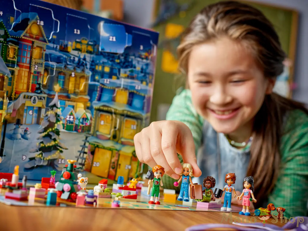 Varázsolj ünnepi hangulatot és meghitt pillanatokat a 6 éves vagy nagyobb lányok és fiúk számára, akik a LEGO® Friends Adventi naptár 2025 (42668) játék építőkészlet ajtajait nyitogatják. A szettben 5 minibabafigura (Aliya, Autumn, Liann, Nova és Leo), valamint 5 LEGO állatka (2 kutya-, egy tengerimalac-, egy gekkó- és egy macskafigura) található. Nyiss ki minden nap egy ajtót, hogy összeálljon az ünnepi pizsamaparti története! Keresd az ajtók mögötti kedves kis meglepetéseket karácsonyi építmények formájában! Fedezz fel olyan ünnepi tevékenységeket, mint a levélírás a Mikulásnak, a fa feldíszítése, a karaoke éneklés, a lovaglás a játék lovon, vagy a forró csoki készítése. Mindegyik minibabafigurához tartozik egy matrac, a kisállatoknak pedig különféle kiegészítőik vannak, hogy a jelenet megépítése közben a gyerekek változatos történeteket találhassanak ki. A szettben olyan vidám kiegészítők várnak még, mint a kanapé, a lámpa, a kandalló, a szán, az 5 ajándékdoboz és a LEGO elem rénszarvas-plüssfigura. A szett remek karácsonyváró ajándék a gyerekek számára, de ez a kreatív játék fejleszti a kis építők szociális készségét is, miközben a barátokkal együtt egy felejthetetlen pizsamapartin vesznek részt. LEGO® Friends Adventi naptár 2025 – Ez a gyerekeknek készült adventi naptár építőszett 24 napon át várja meglepetésekkel a 6 éves vagy nagyobb lányokat és fiúkat, akik végül egy ünnepi pizsamaparti jelenetét építhetik meg Fedezz fel ünnepi tevékenységeket! – Csatlakozz a figurákhoz, akik levelet írnak a Mikulásnak, feldíszítik a fát, karaokéznak, játék lovon lovagolnak, forró csokit készítenek, majd pihennek az ágyukban A szett 5 LEGO® Friends szereplőt tartalmaz – Aliya, Autumn, Liann, Nova és Leo figurák, plusz 5 LEGO állat: 2 kutya-, egy tengerimalac-, egy gekkó- és egy macskafigura Vidámság kockáról kockára – Mindegyik figurához tartozik egy matrac, és mindegyik kisállatnak van kiegészítője: Airának csontja, Popcornnak itatója, Churrónak kaparófája, Rubynak fekhelye, Pickle-nek pedig etetője Játék adventi naptár rengeteg történettel – Ez a LEGO® Friends szett szuper ajándék lehet adventre vagy karácsony előtt azoknak a gyerekeknek, akik szeretik az ünnepi tevékenységeket Online műsor – Inspirálj még több kreatív játékötletet a választék többi (külön kapható) készletével és a LEGO® Friends: A következő fejezet című online műsorral, ahol a gyerekek megismerkedhetnek Heartlake City lakóival Meséljünk el egy történetet a barátságról! – A külön kapható LEGO® Friends építőszettek választékával a gyerekek megismerhetik a barátság különféle pillanatait, és rengeteg lehetőség vár rájuk, hogy elmeséljék fantáziadús történeteiket Mit rejt a doboz? – Ebben a 237 darabból álló szettben 24 napon át meglepetések várnak: figurák, házi kedvencek, tevékenységek és sok más, amit felfedezhetsz karácsonyig