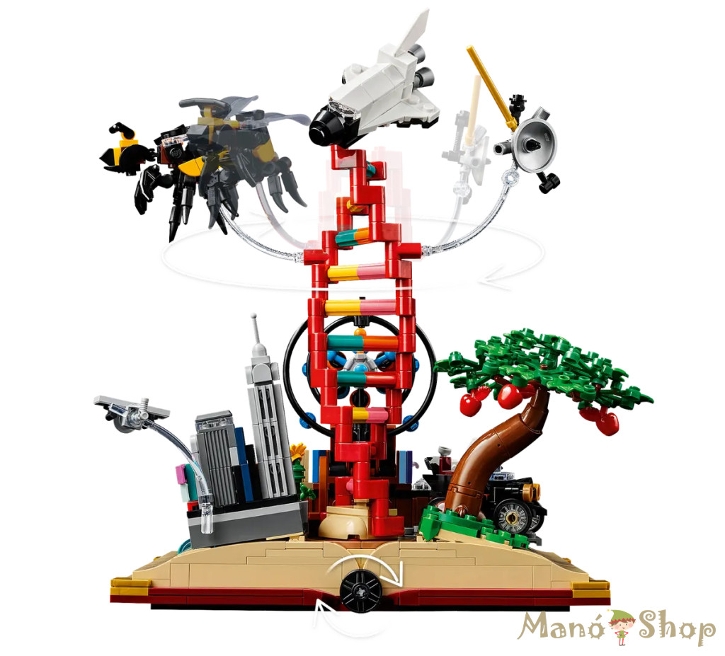 Lapozd fel a STEM tudományágak (természettudományok, technológia, mérnöki tudományok és matematika) fejlődésének kockákból épült könyvét ezzel a felnőtteknek készült, gyűjthető és kiállítható LEGO® Ideas modellel (21355)! Egy inspiráló tudományos ajándék nőknek, férfiaknak és történelemrajongóknak, hiszen a szett tartalmaz egy nyitott könyv formájú, megépíthető alaplapot, amelyen a történelmi felfedezéseket megörökítő miniépítmények kapnak helyet. Építs egy régi autót, egy asztali számítógépet, vagy rakd össze a NASA Voyager-program űrszondáját az arany lemezjátszóval, és kutasd a földön kívüli életet! De ez még nem minden! Forgasd el a gombot, hogy felemelkedjen a szénatom 3D-s modellje és hogy forogjon a DNS-spirál. A szett 3 híres tudós LEGO minifiguráját is tartalmazza: Marie Curie (née Skłodowska), az első ember, aki 2 Nobel-díjat is nyert; Sir Isaac Newton, akinek a nevéhez fűződik az egyetemes tömegvonzás törvénye; és George Washington Carver, aki mezőgazdasági szakértőként vált úttörővé. Keresd az építési útmutatót a dobozban vagy a LEGO Builder alkalmazásban, hogy végigkísérjen a STEM tudományágak történetében tett, izgalmakkal teli, kreatív utazáson! 879 elemből áll. Tudományos ajándék nőknek, férfiaknak és történelemkedvelőknek – Ünnepeld a természettudományok, a technológia, a mérnöki tudományok és a matematika mérföldköveit a gyűjthető LEGO® Ideas A STEM tudományágak fejlődése kiállítható modellel! 3 híres tudós LEGO® minifigurája – Marie Curie (née Skłodowska), a „modern fizika anyja”, Sir Isaac Newton, a tudományos forradalom vezéralakja, George Washington Carver, a mezőgazdasági tudományok úttörője Gyűjthető és kiállítható modell felnőtteknek – A megépíthető alaplap egy nyitott könyvet formáz, amelyre számos miniépítmény kerül, például Newton almafája, Carver növényágyása, egy űrsikló vagy egy robotkar Szórakoztató jellemzők – Fordítsd el a gombot, hogy felemelkedjen a szénatom 3D-s másolata, és hogy forogjon a DNS-spirál, majd nézd meg a morzejelekkel kódolt üzenetet, a NASA Voyager-űrszondáját az arany hanglemezzel, és ez még nem minden! Ajándék a természettudományok és a történelem rajongóinak – Lepd meg saját magad, vagy ajándékozd ezt a LEGO® modellkészletet egy másik felnőttnek, aki imádja a STEM tudományágakat vagy a történelmet Egy segítő kéz – Nézd meg az építési útmutatót a LEGO® Builder appban vagy a dobozban található füzetben, amelyben interjúkat is olvashatsz a szett rajongó tervezőjével és a LEGO Ideas tervezőkkel A LEGO® rajongók választása – Ez a felnőtteknek szánt, gyűjthető építőszett része a LEGO Ideas szettek választékának, amelyek mindegyikét rajongó tervezők készítették, LEGO rajongók szavazták meg, a LEGO Csoport pedig megvalósította Természettudományok ihlette lakásdekoráció – A 879 darabból álló LEGO® szett 27 cm magas, 23 cm széles és 19 cm mély