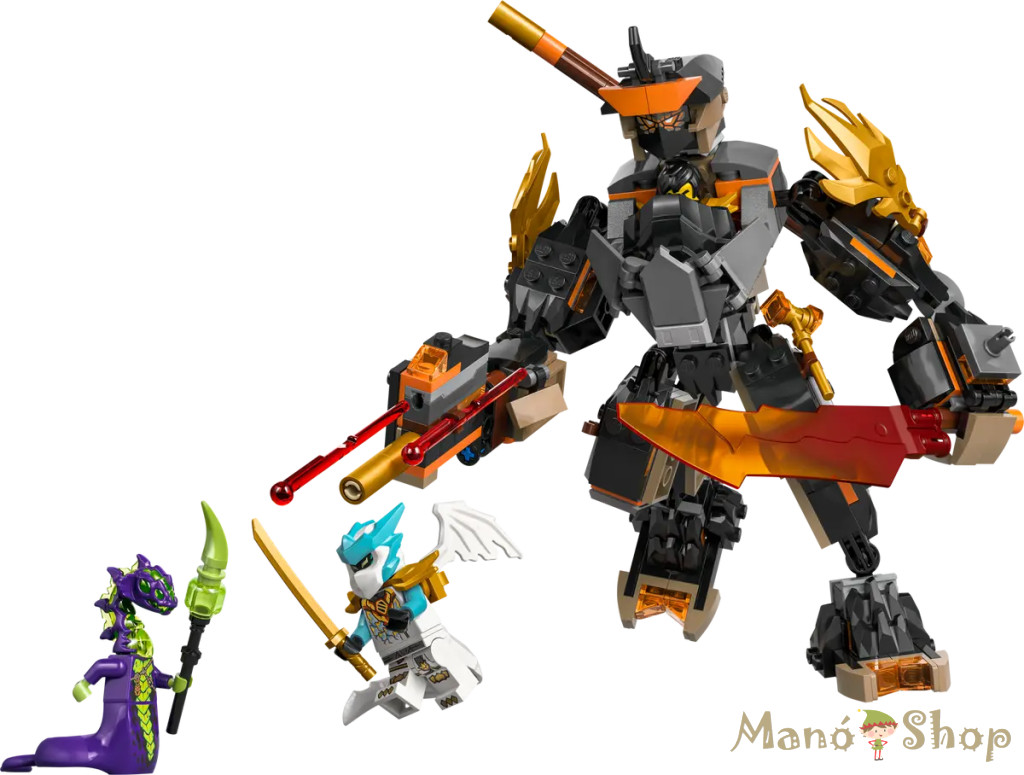 A 7 éves és nagyobb fiúk és lányok imádni fogják ezt a LEGO® NINJAGO® Cole akciórobotja és Sárkány Zane (71854) nindzsa játékot, és hogy újraélhetik a NINJAGO Sárkányok birodalma tévésorozat 4. évadának jeleneteit! Ez a játékkészlet egy beállítható fejjel, karral, vállpáncéllal, ujjakkal, lábbal és bokával ellátott játék robotot tartalmaz, valamint egy pilótafülkét is, amelyben egy minifigura helyezhető el. A robot 3 fegyverrel rendelkezik: egy karddal, egy bottal és egy rugós kilövővel, amelyhez 2 nyíl is tartozik, és amelyeket a gyerekek kicserélhetnek a Riyu, a nindzsasárkány csatája (71855) készlet (külön kapható) fegyvereire! Ez a NINJAGO játék 3 minifigurát is tartalmaz: Cole kalapáccsal, a sárkányformát öltő Zane karddal és a marószörny botjával a fantáziadús csatákhoz. A LEGO NINJAGO építőkészletek kínálatában robotok, sárkányok és templomok is találhatók, így a rajongók kedvükre játszhatnak el nindzsás akciókat! A LEGO Builder appal a gyerekek magabiztosan építhetik meg a ját ékkészleteket – felnagyíthatják és megforgathatják 3D-ben a modelleket, valamint nyomon követhetik a haladásukat a könnyen követhető digitális útmutatókkal. A készlet 364 elemet tartalmaz.