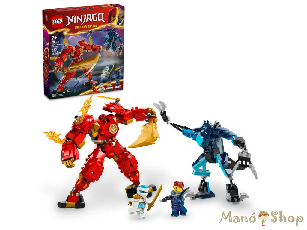 A 7 éves vagy annál nagyobb gyerekek újraalkothatják a NINJAGO® Sárkányok birodalma 2. évadának történeteit a Kai elemi tűzrobotja (71808) nindzsajátékkal. A robot karjai, lábai beállíthatók, így látványos csatapózokba lehet beállítani, emellett arobotnak van vezetőfülkéje a nindzsafigura számára és egy nagy, arany kardja, hogy csatajeleneteket lehessen eljátszani a farkasklán robotja ellen. Ez a testre szabható robot lehetővé teszi, hogy a gyerekek megépítsék a saját robotjukat! A leválaszthat ó láb, kar és törzs 2 másik robot részeivel kombinálható: Cole elemi földrobotja (71806) és Sora elemi csúcsrobotja (71807) (külön kaphatók). A gyerekek órákon át élvezhetik a szórakozást, miközben cserélgetik és összeillesztik a részeket, hogy egyedi akciófigurát építsenek. A vörös robothoz 4 minifigura jár – Kai és Zane, mindketten katanával, Jordana egy karddal és egy Farkas álarcos harcos – így a gyerekek izgalmas nindzsaakciókat játszhatnak el. A készlet a LEGO® Builder app segítségével is megépíthető, amellyel egy könnyű és intuitív építési kalandban lesz részed neked és a gyerekeknek is. Testre szabható, akciófigurás játék gyerekeknek – Kai elemi tűzrobotja nindzsajáték fiúknak és lányoknak, 7 éves kortól. A leválasztható lábaknak, karoknak és törzsnek köszönhetően kombinálható 2 másik robottal (külön kaphatók) Építsd meg a saját robotpáncélodat – A gyerekek órákon át élvezhetik a kreatív szórakozást, miközben cserélgetik ezeknek a nindzsás kalandjátékoknak a részeit (a szettek külön kaphatók), hogy megalkossák a saját robotfigurájukat 4 NINJAGO® minifigura – A szett tartalmaz egy Kai, Zane és Jordana figurát kardokkal és egy Farkas álarcos harcost, így a gyerekek újrajátszhatják a NINJAGO Sárkányok birodalma című sorozat 2. évadának csatáit Beállítható figura – Kai robotjának karjai, lábai csatapózokba hajlítható, és van egy nagy, arany kardja a csatajelenetek eljátszásához a farkasklán robotfigurája ellen Nindzsaajándék – Ez a csatázós játék vidám építési és játékélményt nyújt, és remek ajándék lehet akár a hétköznapokon olyan gyermekeknek, akik imádnak akciókkal teli történeteket eljátszani Még több testre szabható robot – A gyerekek kombinálhatják Kai robotjának részeit a Cole elemi földrobotja (71806) és Sora elemi csúcsrobotja (71807) szettekkel, amelyek külön kaphatók Nindzsajátékok univerzuma – A LEGO® NINJAGO® készletek sárkányokat, járműveket és templomokat tartalmaznak, és lehetővé teszik, hogy a gyerekek a nindzsahőseikkel egy kalandokkal teli fantáziavilágban kalandozzanak Méretek – A 322 elemből álló LEGO® szett tartalmaz egy 16 cm magas NINJAGO® robotot