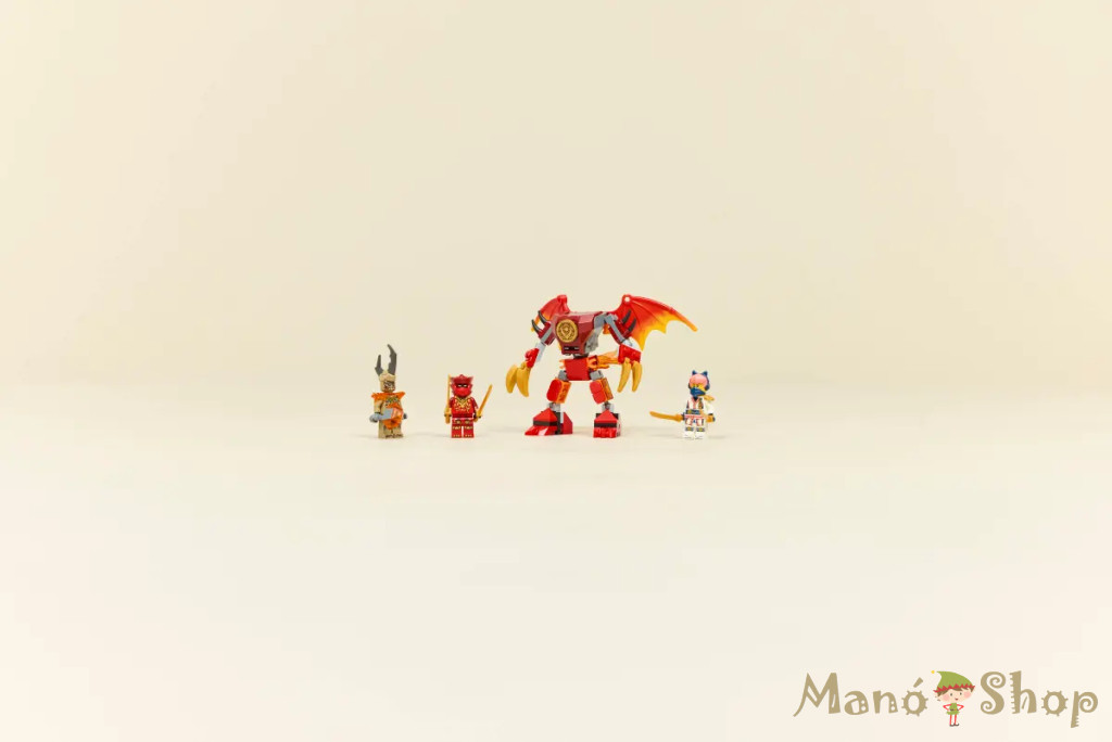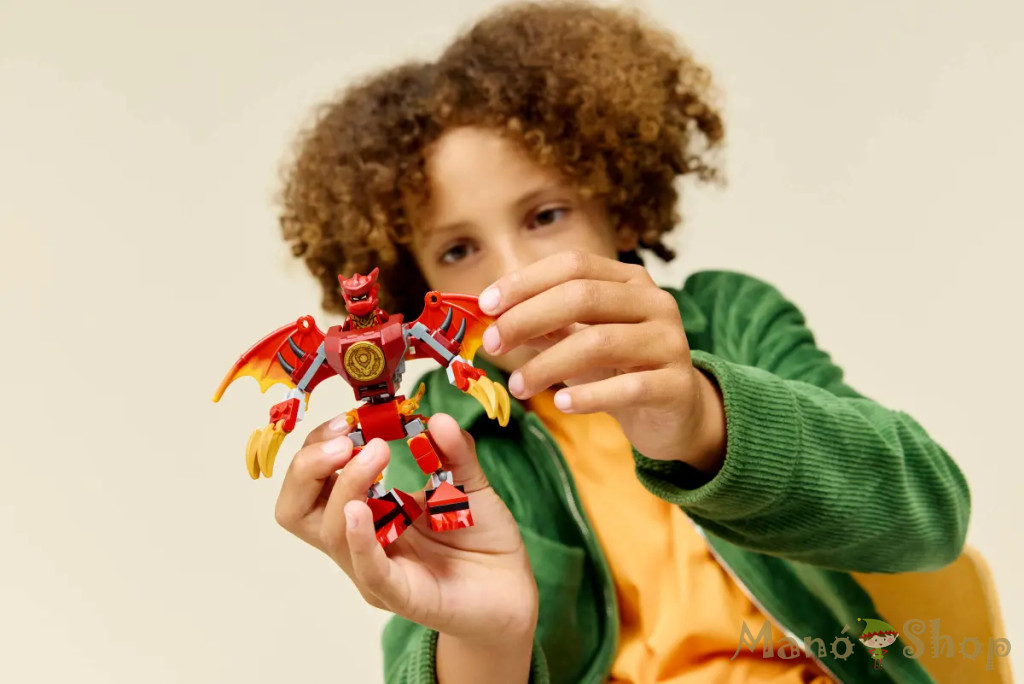 A 6 éves és nagyobb fiúk, lányok és a NINJAGO® Sárkányok birodalma tévésorozat rajongói órákon át élvezhetik a fantáziadús játékot a LEGO® NINJAGO Kai sárkánypáncélja, harci csomag (71851) építőkészlettel! Ez a játékkészlet egy sárkányrobot játékot tartalmaz, amelynek mozgatható lábai, nagy szárnyai, karmai és 360 fokban forgatható felsőteste van, valamint egy pilótafülkéje, amelybe minifigurát lehet helyezni. Ez a kiváló minőségű nindzsajáték 3 minifigurát is tartalmaz: Kait 2 kardkiegészítővel, Sorát 2 karddal és egy karomkezű földszörny játékfigurát, hogy a gyerekek órákon át élvezhessék a kalandokat, miközben eljátsszák a NINJAGO Sárkányok birodalma 4. évadának jeleneteit! A gyerekeknek szánt LEGO NINJAGO építőkészletek és kalandjátékok kínálatában részletesen kidolgozott robotok, sárkányok és templomok találhatók, így a rajongók lenyűgöző nindzsás akciókat játszhatnak el. A LEGO Builder appal a gyerekek magabiztosan építhetik meg a játékkészleteket – felnagyíthatják és megforgathatják 3D-ben a modelleket, valamint nyomon követhetik a haladásukat a könnyen követhető digitális útmutatókkal. A készlet 85 elemet tartalmaz. ROBOTOS JÁTÉK GYEREKEKNEK – A 6 éves és nagyobb fiúknak és lányoknak szánt Kai sárkánypáncélja, harci csomag (71851) építőjáték lehetővé teszi, hogy eljátsszák a NINJAGO® Sárkányok birodalma tévésorozat 4. évadának cselekményét BEÁLLÍTHATÓ SÁRKÁNYROBOT – A sárkányrobot lábai, nagy szárnyai, karmai és 360 fokban forgatható felsőteste beállítható, valamint egy pilótafülke is rendelkezésre áll, amelybe minifigurát lehet helyezni 3 NINJAGO® MINIFIGURA – Ez a nindzsa játék Kai, Sora és egy gonosz földszörny figurával érkezik, hogy a rajongók izgalmas jó és gonosz közötti csatákat játszhassanak el KIEGÉSZÍTŐK – Minden NINJAGO® minifigura karakter legalább egy fegyverrel rendelkezik, ami fokozza a játékélményt: Kainak és Sorának 2 kardja van, a földszörnynek pedig karomszerű kezei APRÓ AJÁNDÉK GYEREKEKNEK – Ez a jó ár-érték arányú LEGO® szett vidám építési és játékélményt nyújt, így remek ajándékötlet lehet lelkes nindzsarajongóknak, akik imádják a fantáziavilágbeli kalandjátékokat MÉG TÖBB NINDZSAKALAND – Fedezd fel a többi LEGO® NINJAGO® játékot (a szettek külön kaphatók), amelyek részletes robotokat, sárkányokat, templomokat és járműveket rejtenek LEGO® NINJAGO® készletek univerzuma – Ez a kiterjedt gyerekjáték-gyűjtemény lehetővé teszi a nindzsarajongók és a gyerekek számára, hogy elmerüljenek egy magával ragadó fantáziavilágban, ahol fantáziadús játékban lehet részük nindzsa hőseikkel MÉRETEK – Ez a 85 elemből álló nindzsás játékkészlet egy 9 cm magas NINJAGO® sárkányrobotot tartalmaz *A termékfotók kizárólag illusztrációs célt szolgálnak. A termék tényleges megjelenése – beleértve a színeket, mintákat, részleteket és kiegészítőket – a gyártás során eltérhet a képeken láthatótól. A gyártó a változtatás jogát előzetes értesítés nélkül fenntartja.*