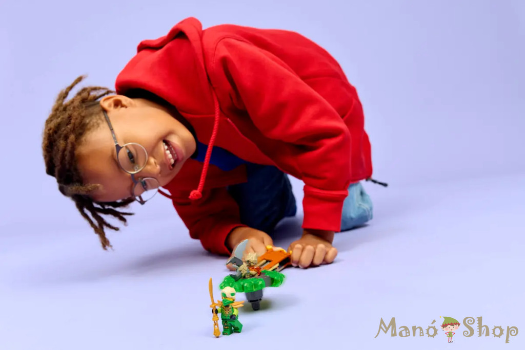 A 6 éves és nagyobb fiúk és lányok imádni fogják ezt a LEGO® NINJAGO® Lloyd egy földszörny pörgettyűje ellen (71850) nindzsajátékot, és hogy újraélhetik a NINJAGO Sárkányok birodalma tévésorozat 4. évadának jeleneteit! Miután megépítették, a gyerekek megnyomják a kilövő gombját, hogy gyors pörgésbe lendítsék a pörgettyűt, és figyeljék, hogy a 2 elemi erő alkatrész lerepül-e róla, amikor eltalálja a célpontját. Ez a kiváló ár-érték arányú kis LEGO készlet 2 minifigurával rendelkezik: Lloyd karddal és a gonosz földszörny, aki a forgó játék belsejében utazhat. Ezekkel a NINJAGO karakterekkel a gyerekek számtalan órát tölthetnek el a jó és a gonosz közötti harcokkal. A LEGO NINJAGO építőkészletek és kalandjátékok kínálatában részletesen kidolgozott robotok, sárkányok és templomok találhatók, így a rajongók lenyűgöző nindzsás akciókat játszhatnak el. A LEGO Builder appal a gyerekek magabiztosan építhetik meg a játékkészleteket – felnagyíthatják és megforgathatják 3D-ben a modelleket, valamint nyomon követhetik a haladásukat a könnyen követhető digitális útmutatókkal. A készlet 52 elemet tartalmaz. HARCI JÁTÉK – A 6 éves vagy nagyobb fiúk és lányok eljátszhatják a NINJAGO® Sárkányok birodalma tévésorozat 4. évadának jeleneteit ezzel a LEGO® NINJAGO Lloyd egy földszörny pörgettyűje ellen (71850) nindzsajátékkal! PÖRGETTYŰJÁTÉK MÓKÁS FUNKCIÓKKAL – Miután megépítették, a gyerekek megnyomják a kilövő gombját, hogy gyors pörgésbe lendítsék a pörgettyűt, és figyeljék, hogy a 2 elemi erő alkatrész lerepül-e róla, amikor eltalálja a célpontját. 2 NINJAGO® MINIFIGURA – Ez a gyerekeknek szánt kalandjáték Lloyd és a pörgettyűben ülő gonosz földszörny figurájával érkezik, hogy a gyerekek izgalmas jó és gonosz közötti csatákat játszhassanak el KIEGÉSZÍTŐK – Minden NINJAGO® minifigura karakter legalább egy fegyverrel rendelkezik, ami fokozza a játékélményt: Lloydhoz kard tartozik, a földszörnynek pedig nagy karmai vannak. APRÓ AJÁNDÉK GYEREKEKNEK – Ez a jó ár-érték arányú LEGO® szett vidám építési és játékélményt nyújt, így remek ajándékötlet lehet lelkes nindzsarajongóknak, akik imádják a fantáziavilágbeli kalandjátékokat MÉG TÖBB NINDZSAKALAND – Fedezd fel a többi LEGO® NINJAGO® játékot (a szettek külön kaphatók), amelyek részletes sárkányokat, robotokat, templomokat és járműveket rejtenek LEGO® NINJAGO® készletek univerzuma– Ez a kiterjedt gyerekjáték-gyűjtemény lehetővé teszi a nindzsarajongók és a gyerekek számára, hogy elmerüljenek egy magával ragadó fantáziavilágban, ahol fantáziadús játékban lehet részük nindzsa hőseikkel MÉRETEK – Ez az 52 elemből álló kitalált játék tartalmaz egy pörgettyűjátékot kilövővel és egy földszörny minifigurát, amelyek együttesen 6 cm magasak, 11 cm hosszúak és 9 cm szélesek *A termékfotók kizárólag illusztrációs célt szolgálnak. A termék tényleges megjelenése – beleértve a színeket, mintákat, részleteket és kiegészítőket – a gyártás során eltérhet a képeken láthatótól. A gyártó a változtatás jogát előzetes értesítés nélkül fenntartja.*