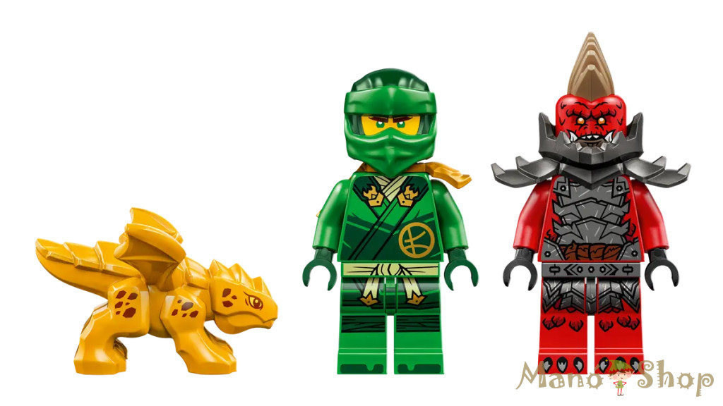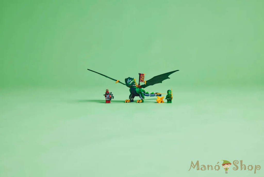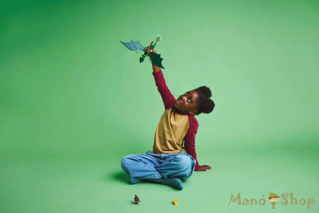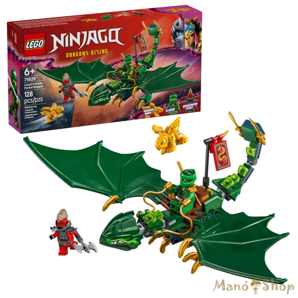 A 6 éves vagy nagyobb fiúk és lányok az ég felé szárnyalhatnak, és újra átélhetik a NINJAGO® Sárkányok birodalma 3. évadának levegőben játszódó jeleneteit a Lloyd zöld, erdei sárkánya (71829) játék építőkészlettel! Tartalmaz egy beállítható farokkal, nyakkal, lábbal, valamint hatalmas szárnyakkal és kezekkel rendelkező, lenyűgöző játék sárkányt, amelynek hátán egy minifigura ülhet a nyeregben. Ehhez a LEGO® NINJAGO sárkányos készlethez 2 figura is tartozik: Lloyd katanakiegészítővel felszerelkezve és a gonosz dragoniai felderítőharcos fejszekiegészítővel. A készlet része még egy arany bébisárkány-modell, akit a gyerekek vidáman és játékosan gondozhatnak. A LEGO NINJAGO megépíthető nindzsajátékainak választéka robotokat, járműveket és templomokat tartalmaz, így a gyerekek a hősökkel együtt utazhatnak egy kalandokkal teli fantáziavilágba. Mindegyik játékkészlet megépíthető a LEGO Builder app segítségével, amely egy könnyű és intuitív építési kalandon kísér végig téged és a gyerekedet. Játék sárkány gyermekeknek – A 6 éves vagy nagyobb fiúk és lányok eljátszhatják a NINJAGO® Sárkányok birodalma című sorozat 3. évadának levegőben játszódó jeleneteit a Lloyd zöld, erdei sárkánya szettel Beállítható NINJAGO® sárkány – Lloyd zöld, erdei sárkányának megépíthető modellje, beállítható farokkal, nyakkal, lábbal, kézzel és hatalmas szárnyakkal, a hátán pedig egy minifigura ülhet a nyeregben 2 minifigura – Lloyd arany katanakiegészítővel, a gonosz dragoniai felderítőharcos pedig fejszekiegészítővel van felszerelkezve, hogy a gyerekek izgalmas nindzsaakciókat játszhassanak el Bébisárkány-modell – Ehhez az építőszetthez tartozik egy arany bébisárkány-modell, akiről a nindzsarajongók gondoskodhatnak, hogy még több játéklehetőséget próbálhassanak ki Nindzsaajándék – Ez a csatázó játékkészlet vidám építési és játékélményt nyújt, és remek ajándékötlet lehet olyan gyerekeknek, akik imádnak akciókkal teli nindzsatörténeteket eljátszani Még több nindzsakaland – Keresd a többi NINJAGO® játékot (a szettek külön kaphatók), amelyek templomokat, robotokat és járműveket rejtenek Nindzsajátékok univerzuma – A LEGO® NINJAGO® készletekkel a gyerekek a nindzsahőseikkel együtt kalandozhatnak egy izgalmakkal teli fantáziavilágban Méretek – A 128 darabból álló, gyermekeknek készült LEGO® építőszett tartalmaz egy beállítható, játék sárkányt, amely 10 cm magas, 24 cm hosszú és 33 cm széles