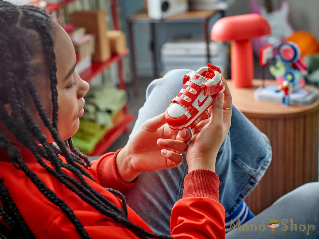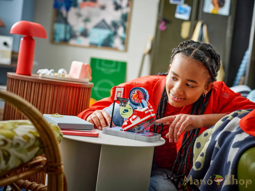 Legyen a szomszédos játszótér a kosárpálya ezzel a csodálatos, 10 éves vagy nagyobb gyerekeknek szóló LEGO® Nike Dunk Trickshot (43021) építőszettel, amiből a kosárrajongók egy vagány sportjelenetet építhetnek a hatalmas dobás előtt. A leendő sztárkosarasok először egy művészi graffitihátteret építhetnek, majd egy vagány rövidszárú sneakert és egy gyűrűt rakhatnak össze. A sneaker a Nike ikonikus Nik Dunk cipője alapján készült, és még a színösszeállítása is az eredetit tükrözi. De ez több mint egy sneakermodell, hiszen a rajta lévő minikar lenyomásával a gyerekek imitálhatják a zsákolás mozdulatát, vagy le is vehetik a modellt, és saját kosármeccseket játszhatnak el. A jelenetet egy exkluzív minifigura kelti életre, amihez 2 fej és egy kapucni is tartozik, aminek designja a LEGO Nike kollaboráció eredménye. Egy szórakoztató ajándék a sportrajongók minden korosztályának, hiszen ez egy élénk színű sportdekoráció, ami játékosan ünnepli a kosárlabdázást. A készlet 454 elemből áll. Sportos játékjelenet – Csempészd a szabad stílusú utcai kosarazás hangulatát az otthonodba a 10 éves vagy nagyobb gyerekeknek készült LEGO® Nike Dunk Trickshot építőszettel! Építés és zsákolás – Építsd meg a graffitihátteret, majd rakd össze a gyűrűt és a rövidszárú, eredeti piros színösszeállítású Nike Dunk sneakert! Játék sneaker – A Nike Dunknak van egy speciális funkciója, ami a zsákolás mozdulatát imitálva előremozdítja a cipőt, de le is lehet venni, hogy saját kosármeccseket játszhass Kosaras minifigura – A készlethez tartozik egy vagány, egyedi figura, egy LEGO® kosárlabda-játékos minifigurája, amihez 2 választható fej és egy LEGO Nike stílusban készült kapucni tartozik Kosárlabdás ajándék – Az utcai kosárlabdás jelenet szuper ajándék fiúknak, lányoknak és sportrajongóknak, hiszen egy olyan vidám dekoráció válik belőle, amit a gyerekek büszkén kiállíthatnak a szobájukban LEGO® Builder app – A építési útmutató digitálisan elérhető a LEGO® Builder appban, ahol a leendő kosarasok felnagyíthatják és megforgathatják építményeiket, és nyomon követhetik a haladásukat LEGO® Nike gyűjtemény – Nézd meg a LEGO Nike gyűjtemény többi (külön kapható) építőkészletét, hogy még több kreativitást zsákolj, és megmutasd, mennyire szereted a sportokat, a stílust és a kultúrát Méretek – Az építőszett 454 elemből áll, és 16 cm magas, 17 cm széles és 13 cm mély