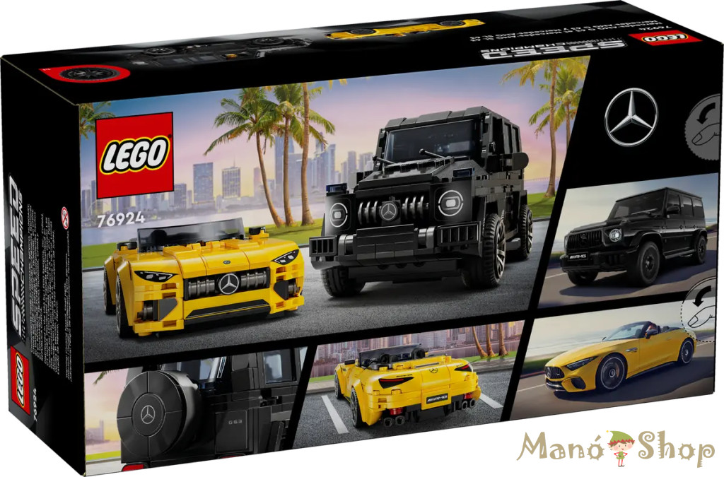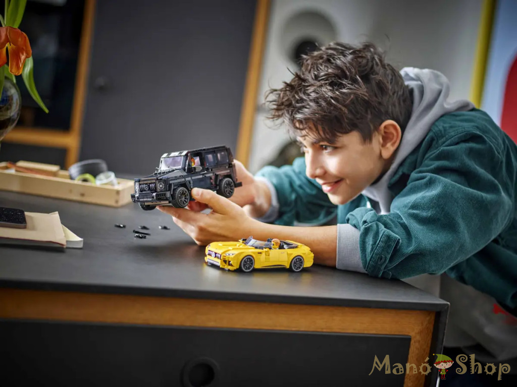 Most a 10 éves vagy nagyobb gyermekeké lehet ez a lenyűgöző Mercedes-AMG dupla csomag, amely a Mercedes-AMG G 63 és a Mercedes-AMG SL 63 LEGO® Speed Champions (76924) megépíthető játék autókat tartalmazza. A 2 stílusos autómodellt rejtő LEGO szett ideális lehet gyermekek, Mercedes-rajongók és lelkes felnőtt gyűjtők számára, akik akciókkal teli versenyeket játszhatnak el, építhetnek meg és állíthatnak ki. A Mercedes-AMG G 6 fekete G-osztály és a Mercedes-AMG SL 63 átalakítható, sárga sportautó modelljei visszatükrözik az eredeti járművek valósághű részleteit, ilyen például az elülső hűtőrács, a motorháztető és a belső tér. Mindkét Mercedes-AMG játékhoz tartozik egy pilóta minifigura is, akit a gyerekek a volán mögé ültethetnek, hogy élvezhessék a versenyzést a pályán. A LEGO Speed Champions autó építőkészletekkel a gyerekek és a lelkes autórajongók megépíthetik a világ néhány ikonikus autójának a másolatait. Mindegyik LEGO® autós játékkészlet összerakható a nyomtatott építési útmutató alapján, vagy a LEGO Builder app segítségével, amely egy könnyű és intuitív építési kalandra hív téged és a gyermekedet. 2 Mercedes-AMG játék autó gyermekeknek – LEGO® Speed Champions Mercedes-AMG G 63 és Mercedes-AMG SL 63 járműveket tartalmazó játékszett 10+ éves fiúknak, lányoknak és felnőtt autómodell-gyűjtőknek 2 pilóta minifigura – Mindkét megépíthető játék járműhöz tartozik agy Mercedes-AMG egyenruhát viselő pilóta minifigura, akivel szupergyors versenyeket játszhatnak el a gyerekek Valósághű Mercedes-AMG formatervezés – Mindkét gyűjthető modell tartalmazza az eredeti autók tervezésének részletei, ilyen például az elülső hűtőrács, a motorháztető, a kerekek, a belső tér és a híres Mercedes-AMG design Kiállítható modellek – Miután a gyerekek órákon át játszottak el vidám versenyeket a 2 játék LEGO® autómodellel, a járműveket kiállíthatják a polcon vagy az éjjeliszekrényen Autós ajándék – Ez a Mercedes-AMG autót tartalmazó játékszett vidám építési és játékélményt nyújt, és remek ajándék lehet 10+ éves gyermekeknek vagy az autómodellek felnőtt gyűjtőinek Még több versenykaland – Fedezd fel a többi LEGO® Speed Campions, valósághű részletekben gazdag, kockákból épült autós játékkészletet (külön kaphatók) Állíts ki ikonikus autós építőjátékokat, és játssz velük! – A LEGO® Speed Champions autós építőszettekkel a gyerekek és az autórajongók megépíthetik a világ ikonikus járműveinek másolatát Méretek – A 806 elemből álló autós LEGO® játékkészletben a Mercedes-AMG G 63 játék 7 cm magas, 18 cm hosszú és 8 cm széles