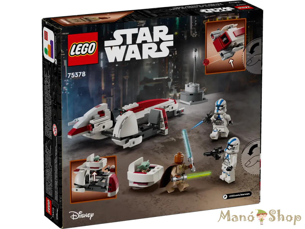 Éld át újra a BARC Speeder menekülés visszatekintő jelenetet a Star Wars: A Mandalóri 3. évadából ezzel az egyedi LEGO® Star Wars™ szettel (75378). A legeslegjobb ajándék a 8+ éves gyermekeknek, rajongóknak és Star Warsgyűjtőknek, hiszen tartalmaz egy LEGO kockákból épült, oldalkocsis speeder bike-ot. A speedernek van egy vezetőülése a minifigura és számára 2 korongvetője, Grogu bölcsője pedig hozzákapcsolható a levehető oldalkocsihoz. A játék építőkészlet egy kisebb jelenetépítményt és 3 LEGO minifigurát is tartalmaz: Kelleran Beq kék és zöld fénykarddal, két 501. klónkatona és Grogu LEGO figurája (akit Bébi Yodának becézünk), hogy inspirálják az akciódús, kreatív játékot. Ehhez a fantáziadús és kalandos építőjátékhoz lépésenkénti útmutató tartozik. A gyerekek letölthetik a LEGO Builder appot is, hogy a digitális eszközökkel nagyítani és elforgatni tudjanak, és hogy az építési élmény még szórakoztatóbb legyen. LEGO® Star Wars™ BARC speeder oldalkocsival – A Star Wars: A Mandalóri című sorozat rajongói ezzel az építőszettel újraalkothatják a vakmerő BARC Speeder visszatekintő jelenetet a sorozat 3. évadából 3 LEGO® Star Wars™ és Grogu – Kelleran Beq kék és zöld fénykardokkal, két 501. klónkatona pisztolyokkal, plusz egy Grogu LEGO minifigura Részletgazdag Star Wars™ BARC speeder bike megépíthető játék – Tartalmaz egy vezetőülést a minifigurának, 2 korongvetőt és egy leválasztható oldalkocsit, amelyben elfér Grogu megépíthető bölcsője Építőjáték a végtelen sok fantáziadús kalandért – A szett része egy kisebb, megépíthető epizód a Star Wars: A Mandalóri Jedi templom visszatekintő jelenetéből, hogy inspirálja a kreatív játékot Ajándékötlet gyermekeknek, 8 éves kortól – Ez a LEGO® Star Wars™ BARC Speeder építőjáték bármikor vidám meglepetés lehet fiúknak, lányoknak, valamint bármelyik Star Wars: A Mandalóri rajongónak, gyűjtőnek Intuitív építési útmutató – A LEGO® Builder appal a gyerekek építés közben felnagyíthatják, megforgathatják és megjeleníthetik építőmodelljük digitális változatát Gyűjthető Star Wars™ építőjátékok gyerekeknek – A LEGO® Star Wars készletekkel a gyerekek és a felnőtt rajongók emlékezetes jeleneteket alkothatnak újra, saját történeteket találhatnak ki vagy kiállíthatják modelljeiket Építsd meg és játssz vele – Ebben a 221 elemből álló LEGO® készletben a kockákból épült Star Wars™ oldalkocsis játék BARC Speeder 4 cm magas, 19 cm hosszú és 9 cm széles *A termékfotók kizárólag illusztrációs célt szolgálnak. A termék tényleges megjelenése – beleértve a színeket, mintákat, részleteket és kiegészítőket – a gyártás során eltérhet a képeken láthatótól. A gyártó a változtatás jogát előzetes értesítés nélkül fenntartja.*