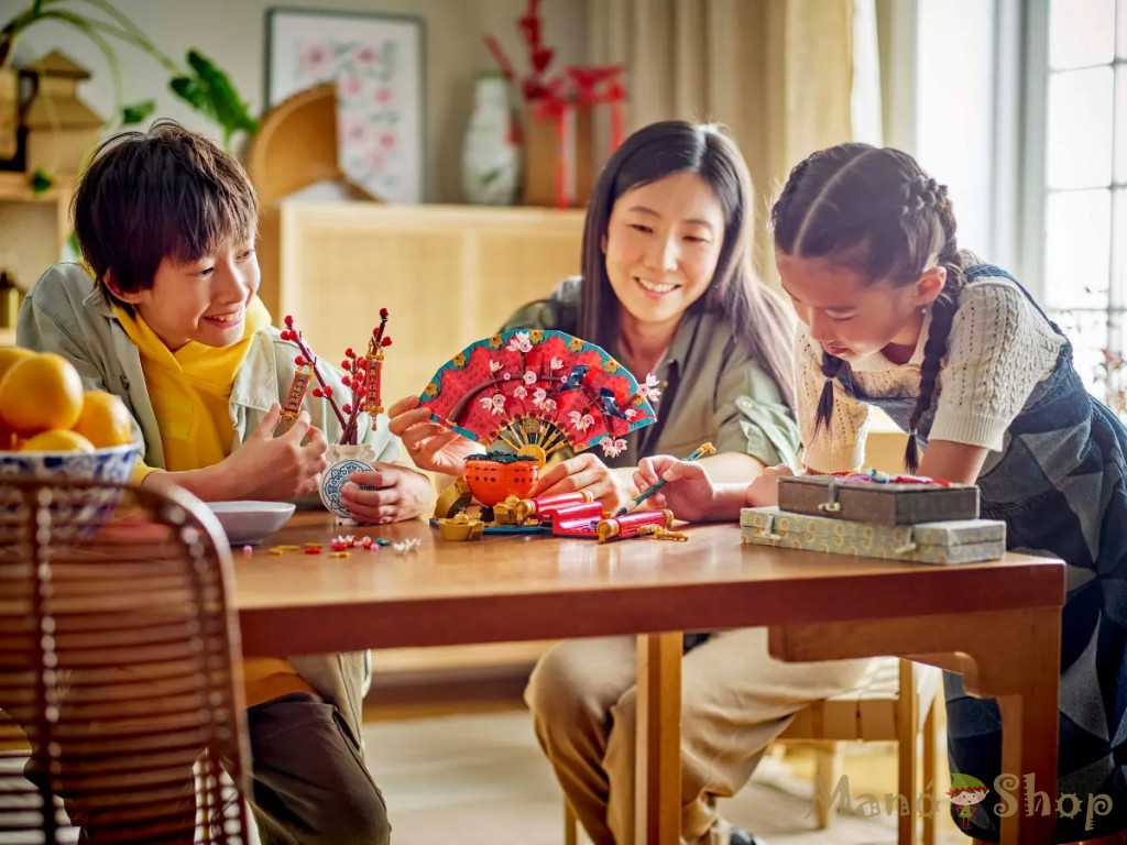 Készíts gyönyörű díszeket a tavaszi fesztivál ünnepére, és várd a jó szerencsét hozó új évet ezzel az aprólékos részletekben gazdag, kiállítható modellel (80117)! Ez a játék építőkészlet egy szuper ajándék 9 éves kortól, egy vidám családi tevékenység, és remek lehetőséget kínál a szülőknek, hogy a hagyományokról beszélgessenek a gyermekekkel. A modell olyan ikonikus tárgyakat jelenít meg, amelyek egy szeretettel, egészséggel, bőséggel és örömmel teli évet szimbolizálnak: egy csodaszép legyező 2szarkával (hogy ne feledd, a jó dolgok mindig párban járnak), akik tavaszi, virágzó ágak fölött repülnek, egy váza szerencsehozó piros gyümölccsel, egy datolyaszilva, aranyrudak és egy kalligrafikus toll, kínai „tavasz” feliratot ábrázoló tekerccsel. Ebben a testre szabható, művészi LEGO® játékban kétféleképp lehet megtervezni a legyezőt (útmutatót a dobozban találsz), és a többi elemet is el lehet távolítani az alaplapról, így az építők saját, egyedi, ünnepi lakásdekoráció készíthetnek. Keresd a LEGO Kínai hagyományőrző ünnepség választékának többi (külön kapható) gyűjthető építőjátékát! LEGO® Kínai hagyományőrző ünnepség Szerencsehozó építőszett – Inspiráld a gyerekeket és az egész családot, hogy a kígyó évének kezdetére szerencsehozó szimbólumokat alkossanak ezzel a részletgazdag, kiállítható modellel Megépíthető és kiállítható játék – Alkoss olyan szerencsehozó szimbólumokat, mint a 2 szarkával díszített legyező, a szerencsehozó piros gyümölcsöt tartó váza, a datolyaszilva, a 3 aranyrúd és a kalligrafikus toll a tekerccsel Családi tevékenység – Inspiráld a gyerekeket arra, hogy ismerjék meg a hagyományokat és fejlesszék szociális készségeiket, miközben vidáman megépítik ezt az egyedi játékot a családjukkal vagy a barátaikkal a tavaszi fesztivál ideje alatt Testre szabható játék – A legyezőt kétféle módon lehet megépíteni (útmutató a dobozban), és forgathatod is a alaplapon, a többi tárgyat pedig leveheted az alaplapról, hogy egyedi elrendezést készíts Ajándék 9 éves kortól – Ez a megépíthető, művészi LEGO® játék remek ajándék lehet gyermekek számára a tavaszifesztivál ideje alatt Építs együtt a barátokkal és a családoddal! – A LEGO® Builder app egy vidám közösségi élményt nyújt, így osztozhattok a LEGO építés örömeiben Gyűjthető játékok – Ez a játékkészlet kombinálható a LEGO® Kínai hagyományőrző ünnepség választékának többi (külön kapható) készletével, amelyek sok vidám családi tevékenységgel várnak Ünnepi lakásdekoráció – Ez az 1021 darabból álló Szerencsehozó modell 20 cm magas, 28 cm széles és 17 cm mély