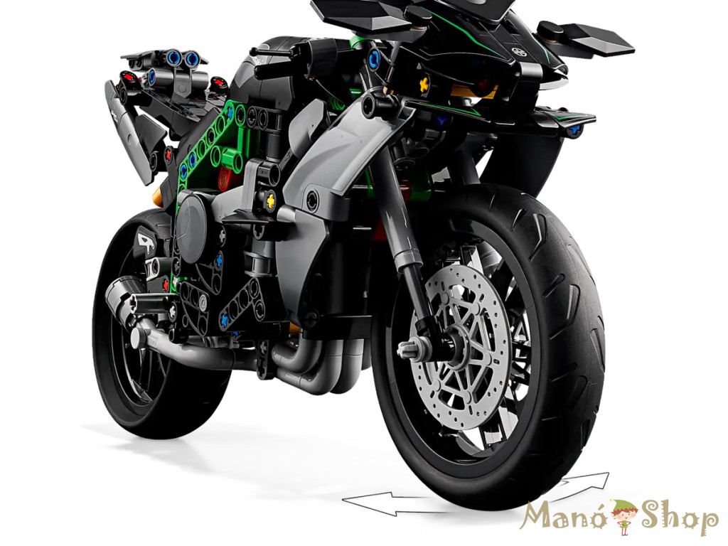 Inspiráld a gyermekeket, hogy fedezzék fel a mérnöki munkát és a technológiát a LEGO® Technic Kawasaki Ninja H2R motorkerékpár (42170) 10+ éves gyermekeknek készült játékkal. Ez a lányoknak és fiúknak egyaránt ideális építőszett hűen követi a világ egyik leggyorsabb sorozatgyártású motorkerékpárjának – a Kawasaki Ninja H2R-nek – a részleteit. Ez az 1:8 méretarányú motorkerékpár modell, amely ideális ajándék lehet a gyermekeknek, kormányozható, valamint van felfüggesztése, 2 fokozatú sebességváltója, 4 hengeres csuklós motorja és turbótöltője. A speciális szélvédő elem egyedileg díszített, a Kawasaki logója pedig megjelenik a benzintank mindkét oldalán. A gyerekek örömüket lelhetik abban, hogy újraalkotják a sajátosságokat és játszanak a különféle funkciókkal, mielőtt a kitámasztó segítségével büszkén kiállítják a játék járműmodelljüket. A LEGO Technic gyermekeknek készült építőszettek valósághű elemei közérthető módon ismertetik meg a fiatal LEGO építőket a mérnöki munkával. Hívd a gyermekedet egy intuitív építési kalandra a LEGO Builder alkalmazással, amelyben 3D-ben ráközelíthet a modellre, és el is forgathatja azt, miközben nyomon követheti a haladását. Játék motorkerékpár, ajándék 10+ éves gyermekeknek – A LEGO® Technic Kawasaki Ninja H2R motorkerékpár telis-tele van valósághű tulajdonságokkal, és örömteli építést nyújt fiúknak, lányoknak 1:8 méretarányú motorkerékpár-modell – Hatalmas figyelmet fordítva a részletekre, ez a méretarányos Kawasaki motorkerékpár játék modell kitámasztót is tartalmaz, így a gyerekek kiállíthatják a gyűjthető modelljüket Rengeteg valósághű részlet – A jellemzők közt található a kormányzás, a felfüggesztés, a 2fokozatú sebességváltó, a 4 dugattyús csuklós motor és a turbótöltő Díszített elemek – A speciális szélvédőelem egyedileg díszített, a benzintank két oldalán pedig a Kawasaki logója jelenik meg Motoros ajándék gyermekeknek – A szett vidám ajándékötlet lehet azoknak a fiúknak és lányoknak, akik imádják a járműveket és a menő játékokat Segítséget nyújtó app – A LEGO® Builder app intuitív útmutatójában az építők felnagyíthatják és megforgathatják a modellek 3D-s változatát, nyomon követhetik a haladásukat, és készleteket menthetnek el, miközben új készségeket tanulnak Méretek – A 643 elemből álló szettben a modell 17 cm magas, 31 cm hosszú és 9 cm széles Kawasaki Ninja H2R motorkerékpár *A termékfotók kizárólag illusztrációs célt szolgálnak. A termék tényleges megjelenése – beleértve a színeket, mintákat, részleteket és kiegészítőket – a gyártás során eltérhet a képeken láthatótól. A gyártó a változtatás jogát előzetes értesítés nélkül fenntartja.*