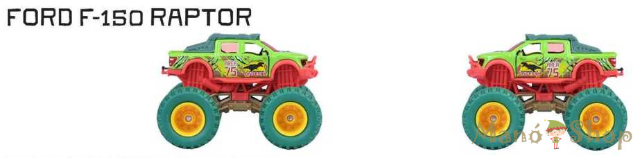 Ez az extrém kivitelű modell a Majorette Monster Rockerz sorozatának tagja, amely a népszerű pick-upokat hatalmas terepkerekekkel és látványos dizájnnal ruházza fel. A Ford F-150 Raptor ezen változata különleges "Dino Park" témájú festést kapott, így garantáltan kitűnik a gyűjteményből.