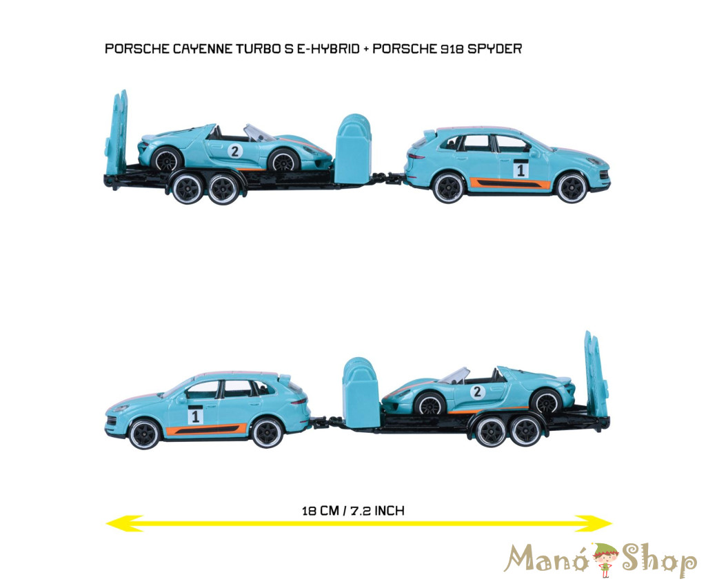 Majorette - Porsche Deluxe Trailer - Porsche Cayenne Turbo S E-Hybrid + Porsche 918 Spyder