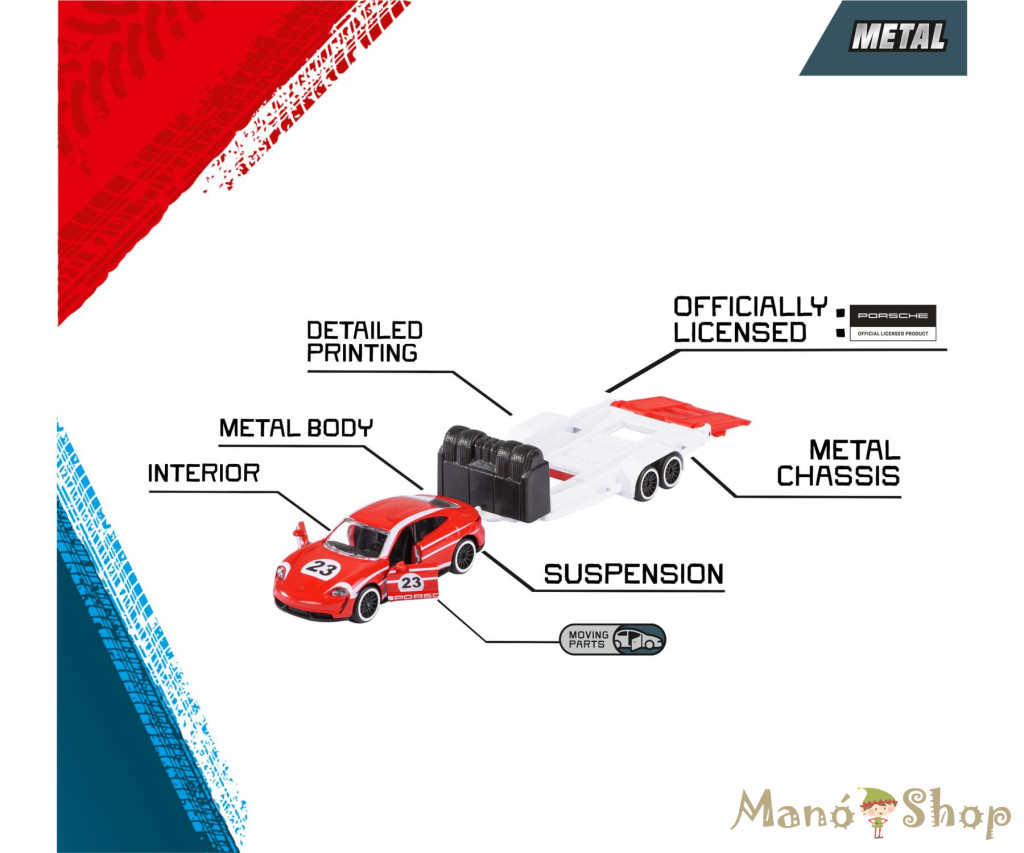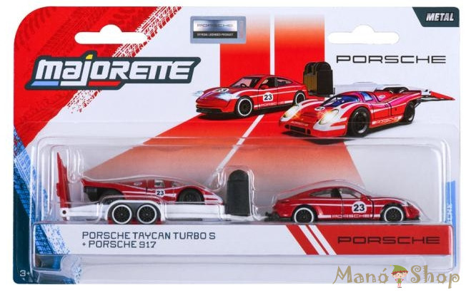 A Majorette Porsche Deluxe Trailer szettben 2 sportautó és 1 utánfutó várja a kis versenyrajongókat. A fém modellautók részletgazdag kidolgozásúak, szabadon futnak, és igazi Porsche dizájnban tündökölnek.
