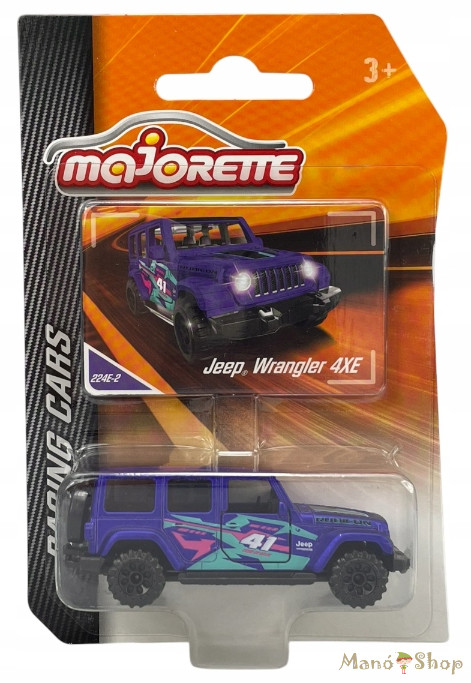 Ez a modell a Majorette Racing Cars sorozatának tagja, amely a terepjárók robusztusságát ötvözi a versenyautók dinamikus megjelenésével. A Jeep Wrangler 4XE hűen tükrözi az eredeti hibrid terepjáró stílusjegyeit, egyedi versenyfestéssel kiegészítve.