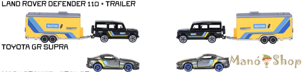 Majorette - Racing Deluxe Trailer - Land Rover Defender 110 + Toyota GR Supra