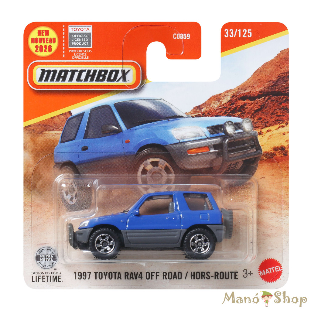 Térjen vissza a kompakt SUV-k fénykorába ezzel a klasszikus, 1997-es Toyota RAV4 modellel! Ez a kiadás a "New for 2026" sorozat tagjaként érkezik, és a népszerű terepjáró korai, robusztus változatát örökíti meg. A modell kiválóan ötvözi a retro stílust a Matchboxra jellemző tartóssággal.