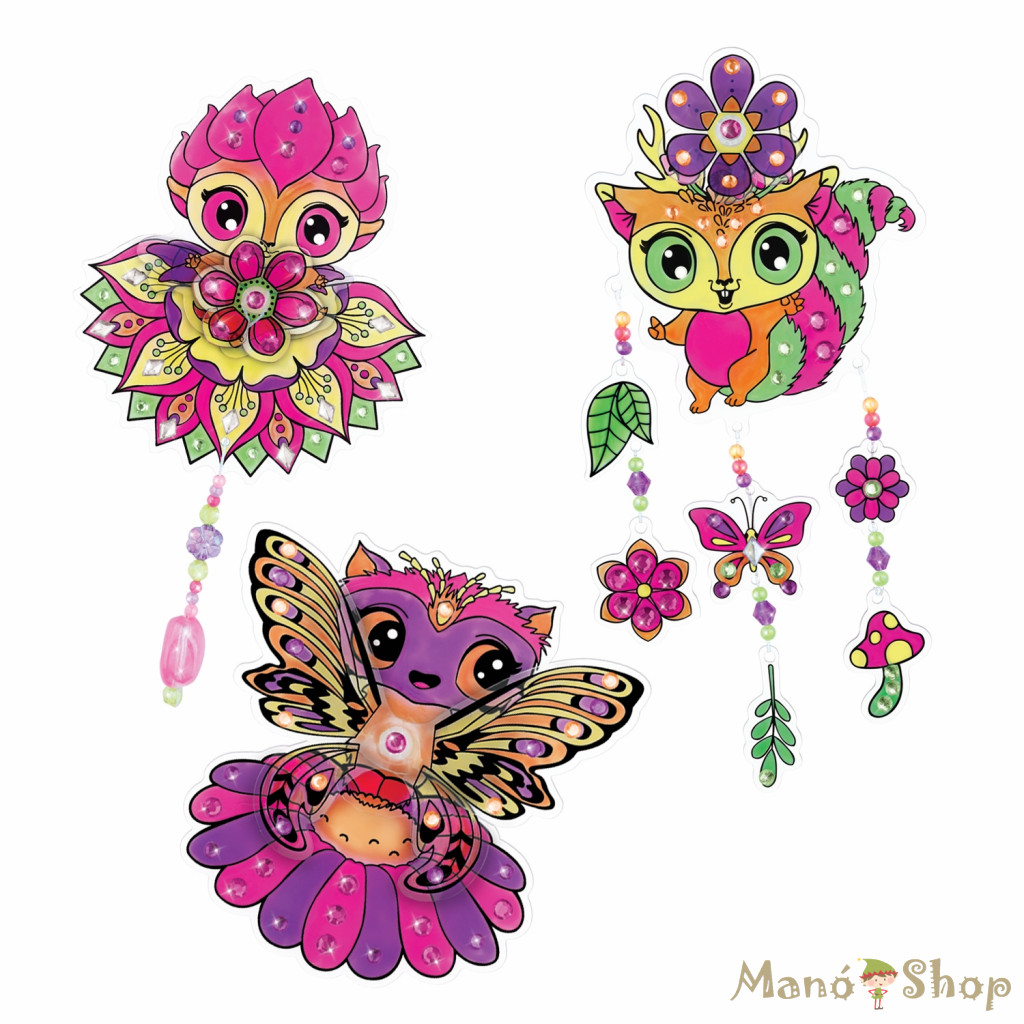Készíts 3 varázslatos függő ablakdíszt, amelyek ragyognak a napfényben! Fesd ki a kivágott formákat, díszítsd őket csillogó strasszokkal, majd fűzd fel gyöngyökkel és zsinórral a tapadókorongokra. Alkoss egyedi, fénylő dekorációkat, amelyek varázslatot visznek a szobádba!