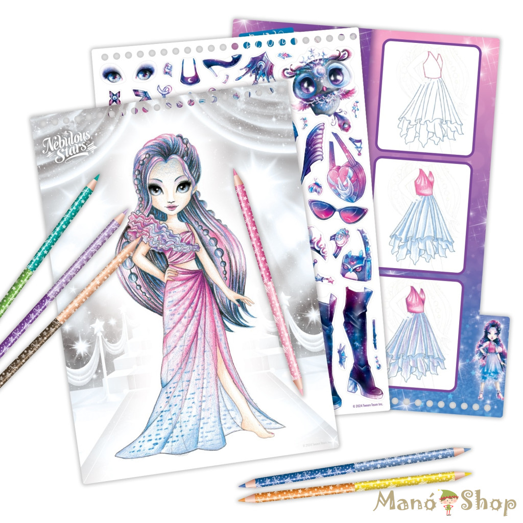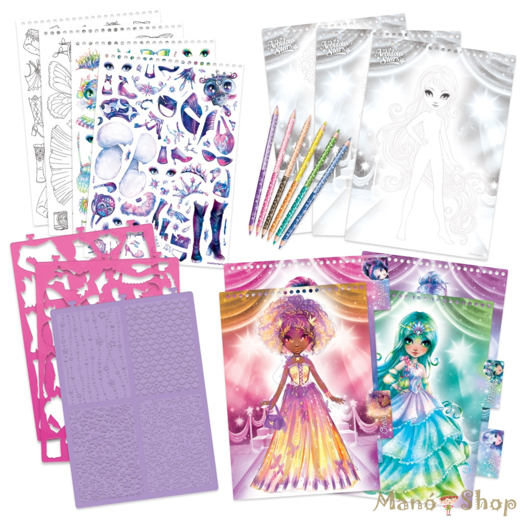 A Csillagok meghívást kaptak egy bálba! Segíts nekik felkészülni, és alkoss gyönyörű ruhákat, kiegészítőket és frizurákat ezzel az új divattervező skicckönyvvel.