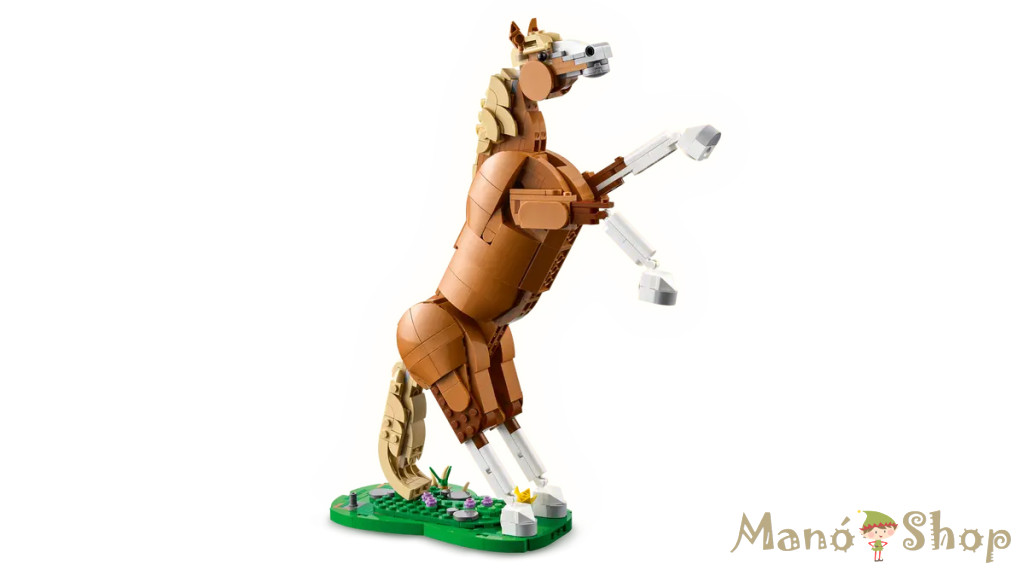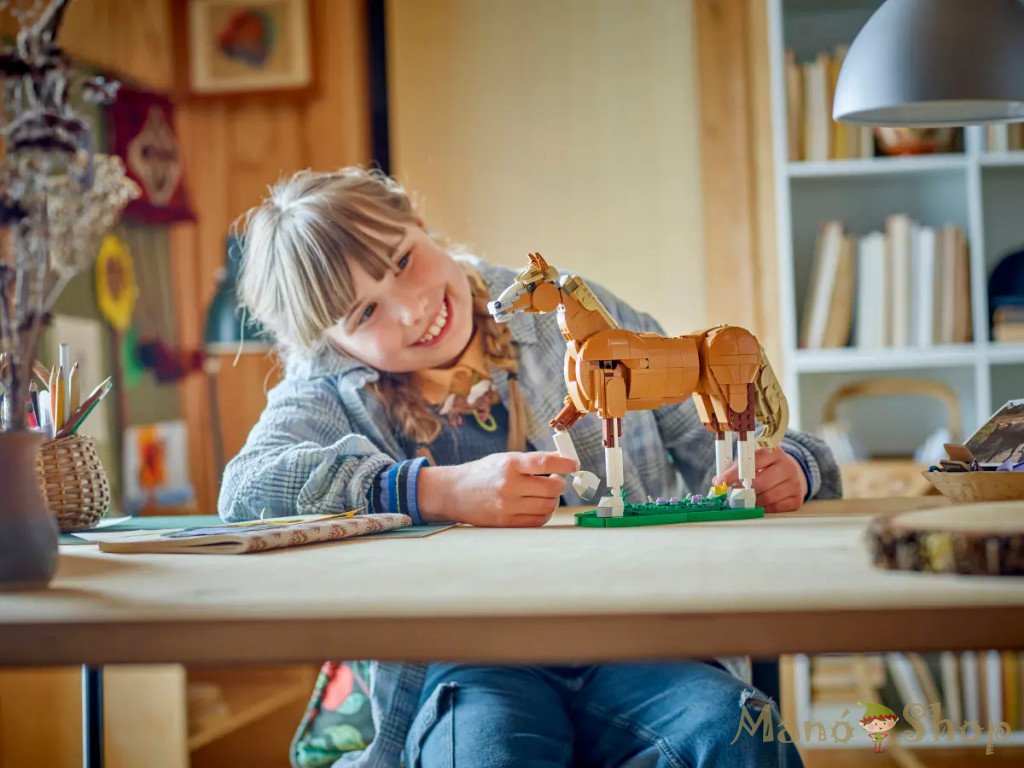 A 9 éves vagy nagyobb, állatbarát lányok és fiúk vidám történeteket játszhatnak el a játék állatot tartalmazó Csodaszép ló (31166) építőszettel. A sokoldalúan beállítható játék lónak mozgatható a feje, a nyaka, a csípője, a bokája, a farka és az egyik térde, továbbá tartozik hozzá egy fűhatású alaplap, amelyre a gyerekek 3 különböző pózban állíthatják a lovat: álló helyzetben, 3 vagy 4 lábon és a hátsó 2 lábán ágaskodó helyzetben. A gyerekekre 3 különböző építési lehetőség vár ugyanazon kockákfelhasználásával: egy játék LEGO® ló, egy beállítható játék medve, kicsi vízesésépítménnyel és egy beállítható és elegáns játék szarvas. Az átalakítható játékszett mindhárom figurája kreatív és szórakoztató ajándék lesz a gyerekek számára. A LEGO Creator 3 az 1-ben szettek minden dobozban 3 különböző, megépíthető modellel inspirálják a gyerekek képzelőerejét! Imádni fogják majd a megépítést, az átépítést és az újraépítést. A 3 az 1-ben készletek olyan modellválasztékot kínálnak, amellyel a gyerekek hódolhatnak a legfőbb szenvedélyeiknek, mint például a szupergyors járművek, a lenyűgöző állatok, vagy a részletgazdag házak. Egyszerre csak egy modellt lehet megépíteni! A szett 685 elemből áll. 3 lenyűgöző játék megépítésének lehetősége 1 dobozban – A LEGO® Creator Csodaszép ló játék építőkészlettel a 9 éves vagy nagyobb gyerekek 3 különböző állatfigurát építhetnek meg ugyanazokból a kockákból Végtelen sok játéklehetőség – A gyerekek 3 különböző állatmodellel játszhatnak el történeteket (a modelleket csak külön-külön lehet megépíteni): egy játék lóval, egy játék medvével és egy játék szarvassal Sokoldalúan beállítható állatfigurák – Mind a 3 állatmodellnek vannak beállítható elemei, például a lábuk és a fejük, így a gyerekek órákon át élvezhetik a fantáziadús játékot Esztétikus szobadekoráció – Az állatfigurákat ki lehet állítani a gyerekszobában, a játék lovat pedig 3 különböző helyzetbe lehet állítani: álló helyzet 3 vagy 4 lábon, ágaskodás a hátsó 2 lábon Lovas ajándék lányoknak és fiúknak – Ez a 3 az 1-ben LEGO® szett vidám építési és játékélménnyel várja a gyerekeket vagy a felnőtt modellgyűjtőket, és születésnapi ajándéknak is tökéletes Építs vidáman! – A LEGO® Builder appal intuitív és kreatív kaland vár a gyerekekre, hiszen készleteket menthetnek el, nyomon követhetik a haladásukat, valamint építés közben felnagyíthatják és megforgathatják a modellek 3D-s változatát LEGO® Creator játékok – Minden (külön kapható) 3 az 1-ben készlettel a gyerekek 3 különböző modellt építhetnek meg, amiket a legfőbb szenvedélyeik inspiráltak; a modellek közt állatok, járművek és házak találhatók Méretek – A 685 darabból álló, átépíthető LEGO® játékszett tartalmaz egy 23 cm magas, 24 cm hosszú és 8 cm széles, állványon álló játék lovat