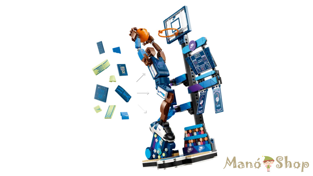 A közönség hallgat. A levegő várakozással teli. Eldobja a labdát, és bent van! Örökítsd meg ezzel a 10 éves vagy nagyobb gyerekeknek készült LEGO® Nike építőszettel (43010) a lendületét és izgalmát annak az óriási pillanatnak, amikor a játékos egy posztergyanús csont nélküli dobásra készült! Hívd elő a benned rejlő bajnokot, miközben megépíted ezt az ünneplésre méltó modellt és felfedezed az összes részletet, ami lázba hozza a tömeget! Alkoss meg egy beállítható karral és fejjel ellátott sztárkosaras-figurát, és keltsd életre a csont nélküli dobás pillanatát a kosárral, az eredményjelző táblával, a bajnoki zászlókkal és a nézőkkel! Ha megépítetted a kosarasodat, akkor tedd egyedivé a Nike mezét és cipőjét, például változtasd a mezszámot és a mintát! Az is nagy dobás lesz, ha megleped ezzel az sportos építőjátékkal a fiúkat, a lányokat és a kosárrajongókat, akik lenyűgöző LEGO Nike dekorációként állíthatják ki ezt a jelenetet a szobájukban. Már hallani lehet is az éljenzést! A készlet 809 elemből áll. Sportos építőkészlet – Örökítsd meg egy poszterre érdemes csont nélküli dobás izgalmakkal teli hangulatát a 10 éves vagy nagyobb gyerekeknek készült, kosaras LEGO® Nike Slam Dunk építőszettel! Egy kosárlabda-játékos figurája – Építs egy beállítható karral és fejjel ellátott, Nike sportfelszerelést viselő kosarasfigurát, majd válassz neki frizurát, és szabd testre a mezét! Sportos játék gyerekeknek – A csont nélküli dobás jelenetét a kosárpalánk, az eredményjelző tábla, a bajnoki zászló és nézők teszik teljessé, de a rajongókra néhányra LEGO® és Nike meglepetés is vár Sportdekoráció – Ha összeállt ez a LEGO® Nike szett, akkor egy szórakoztató kosárlabdás dekoráció válik belőle, ami minden helyiségben életre kelti a játék izgalmát Testre szabható ajándék – Támogasd a kreativitást és a sportok iránti rajongást, és ajándékozd ezt a kosaras építőszettet fiúknak, lányoknak és Nike-rajongóknak! LEGO® Builder app – A építési útmutató digitálisan elérhető a LEGO® Builder appban, ahol a kosárlabda-rajongók felnagyíthatják és megforgathatják építményeiket, és nyomon követhetik a haladásukat LEGO® Nike gyűjtemény – Nézd meg a LEGO Nike gyűjtemény többi (külön kapható) építőkészletét, hogy még több kreativitást zsákolj, és megmutasd, mennyire szereted a sportokat, a stílust és a kultúrát Méretek – Az építőszett 809 elemből áll, és 37 cm magas, 25 cm széles és 14 cm mély *A termékfotók kizárólag illusztrációs célt szolgálnak. A termék tényleges megjelenése – beleértve a színeket, mintákat, részleteket és kiegészítőket – a gyártás során eltérhet a képeken láthatótól. A gyártó a változtatás jogát előzetes értesítés nélkül fenntartja.*