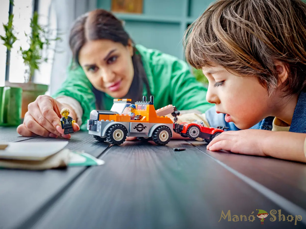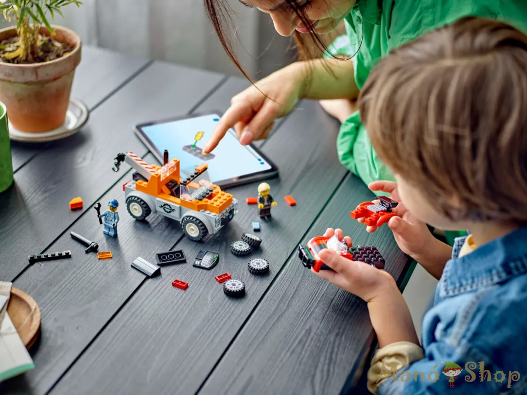 Csatlakozz a mindennapi hősödhöz, és induljatok vidám kalandokra a 4 éves kortól ajánlott LEGO® City Vontató és sportautószerviz játékszettel (60435)! Ez a kreatív építőszett tartalmaz egy jól tapadó kerekekkel felszerelt játék vontatót, egy vezetőfülkét és egy működő csörlőt. Add hozzá a sportautót, a vezetőjét és a vontató sofőrjét, hogy órákon tartson a fantáziadús játék és történetmesélés. A könnyen megépíthető LEGO autós szetthez tartozik egy LEGO kezdőkocka, egy illusztrált útmutató, a LEGO Builder appban pedig 3D-s útmutatót is találsz. Ez az alkalmazás egy digitális építőtárs, olyan intuitív eszközökkel, amelyekkel a kicsik ráközelíthetnek, elforgathatják, és minden szögből megtekinthetik a modellt építés közben. A LEGO City készletek szuper ünnepi vagy születésnapi ajándékok lehetnek a gyermekek számára, hiszen klassz játék járműveket, valósághű szerkezeteket és szórakoztató figurákat tartalmaznak, amelyek korlátlanul inspirálják a fantáziadús játékot. A gyerekek ezt a játék vontatót a LEGO City választék többi (külön kapható) készletével is kombinálhatják, hogy kibővítsék a játéklehetőségek világát. Játékkészlet játék vontatóval, 4 éves kortól – Vegyél részt a kis hősöddel együtt a vidám kalandokban a LEGO® City Vontató és sportautószerviz játékszettel, amely inspirálja a fantáziadús történetmesélést Mit rejt a doboz? – Ebben a játék autómentőt tartalmazó készletben mindent megtalálnak a gyerekek, hogy megépítsék a vontatót és a sortautót, sőt, a vontató és a sportautó sofőrjének minifigurái is a szett részei Ragadja meg a fantázia a kormányt! – Helyezd a sofőröket a LEGO® autóba és vontatóba, hogy órákon át élvezhesd a fantáziadús játékot és a kreatív történetmesélést LEGO® minifigura-kiegészítők – Ez a játék vonatót tartalmazó játékszett olyan kiegészítőkkel teszi izgalmasság a játékot, mint a játék csavarkulcs és a telefon Vidám ünnepi vagy születésnapi ajándék gyerekeknek – Ajándékozd ezt a LEGO® építőjátékot a 4 éves vagy annál idősebb fiúknak és lányoknak Fedezz fel még több készletet! – A gyerekekre még több kaland és vidámság vár, ha ezt a szettet a LEGO® City választék többi (külön kapható) készletével kombinálják Játékos tanulás – A LEGO® City építőjátékokkal a gyerekek az önbizalmukat és kulcsfontosságú készségeiket is fejleszthetik a végtelen, kreatív játékon keresztül Méretek – A vontató ebben a 101 elemből álló LEGO® City szettben 7 cm magas, 16 cm hosszú és 7 cm széles