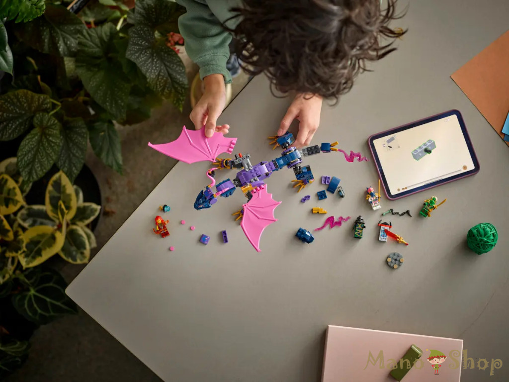 A LEGO® NINJAGO® Rontu, a sárkánymester (71842) játékkal a 7 éves vagy nagyobb nindzsarajongók eljátszhatják a NINJAGO Sárkányok birodalma 3. évadának akciókkal teli jeleneteit. Ez a gyerekeknek szóló játékkészlet tartalmaz egy játék sárkányt, amelynek beállítható farka, lába, szárnya, feje és állkapcsa van, a hátán 2 hely van a minifigurák számára, szárnyai alatt pedig egy-egy korongvető található. Ebben a LEGO játékkészletben 4 NINJAGO minifigura található: Lloyd, Sora és Wyldfyre nindzsaharcosok, mindegyikük nindzsafegyver-kiegészítővel, plusz Zarkt, a balszerencse mestere. A figurákkal a gyerekek eljátszhatják a jó és a gonosz gigantikus csatáit. A szett része egy kockákból épült, kis méretű szentély is, ahol Lloyd egy üzenetre bukkan az áttetsző, titokfeltáró pengekiegészítő segítségével. A LEGO NINJAGO választék (külön kapható) készletei és megépíthető akciójátékai robotokat, járműveket és templomokat tartalmaznak, így a rajongók rengeteg nindzsaakciót játszhatnak el. Mindegyik nindzsás játékszett megépíthető a LEGO Builder app segítségével, amely egy könnyű és intuitív építési kalandon kísér végig téged és a gyermekedet. A készlet 381 elemből áll. LEGO® NINJAGO® sárkányjáték gyerekeknek – A Rontu, a sárkánymester szettel a 7 éves vagy nagyobb fiúk és lányok jeleneteket játszhatnak el a NINJAGO Sárkányok birodalma című sorozat 3. évadából Beállítható sárkányfigura – Ennek a hatalmas sárkánymodellnek beállítható a farka, a lába, a szárnya, a feje és az állkapcsa, a hátán 2 minifigura számára van hely, a szárnyai alatt pedig korongvetőket találsz Miniszentély – Ez a történetmesélős harci csomag tartalmaz egy kicsi, kockákból épült szentélyt, amelyet Zarkt őriz, és amely egy titkos üzenet rejt. Az üzenetet Lloyd fejtheti meg az áttetsző, titokfeltáró pengekiegészítővel 4 NINJAGO® minifigura – Ehhez a LEGO® építőszetthez Sora, Wyldfyre és Lloyd nindzsaharcosok, továbbá a gonosz Zarkt tartozik, és nindzsafegyver-kiegészítők is járnak hozzájuk, hogy a gyerekek eljátszhassák a jó és a gonosz csatáját Születésnapi ajándékötlet gyerekeknek – Ez a LEGO® szett vidám építési és játékélményt nyújt, és remek születésnapi ajándék lehet olyan 7+ éves fiúknak és lányoknak, akik imádják a nindzsás akciókat Építés vidáman – A LEGO® Builder appal intuitív építési kaland vár a gyerekekre, itt készleteket menthetnek el, nyomon követhetik a haladásukat, valamint építés közben felnagyíthatják és megforgathatják a modellek 3D-s változatát LEGO® NINJAGO® szettek univerzuma – Gyerekeknek készült, nindzsajátékokat tartalmazó (külön kapható) játékkészletek gazdag gyűjteménye, amellyel a fiatalok egy fantáziavilágba szökhetnek, ahol fantáziadús játék vár rájuk nindzsahőseikkel Méretek – A Rontu, a sárkánymester figura ebben a 381 darabból álló LEGO® NINJAGO® építőkészletben 13 cm magas